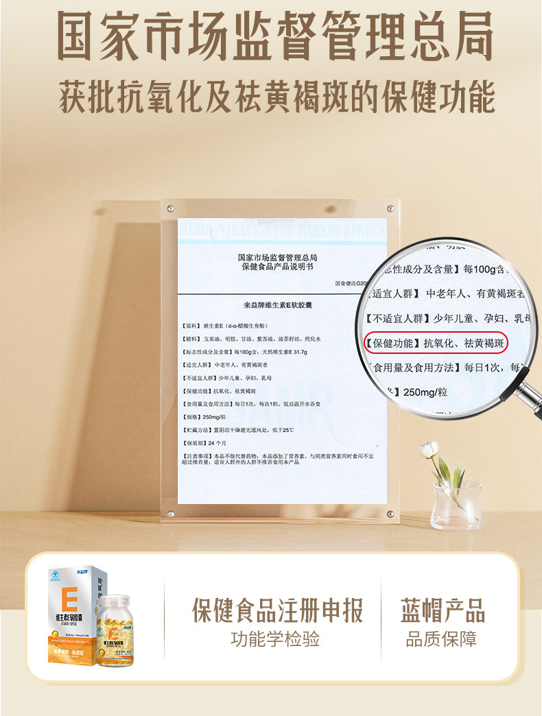 肌肤和身体的需求,从来不该被敷衍对待。来益VE的特别之处,在于它敢将“祛黄褐斑”“抗氧化”明示于包装——这份底气来自全国唯一的双批文认证。没有廉价红花籽油的黏腻负担,选用玉米油、紫苏油等轻薄基底,甚至油痘肌也能安心内服外用。无论是混入面霜急救干裂的脸颊,还是每日一粒由内滋养,它都在用行动告诉你:疲惫的皮肤值得被认真修复,忙碌的生活更需要一份轻盈的守护。