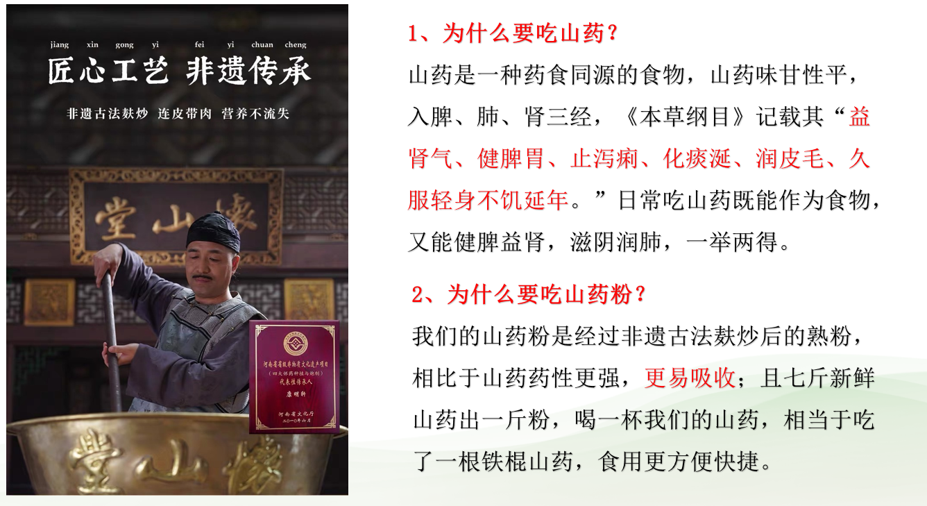 若细看包装上那位目光炯炯的非遗传承人,会读懂这罐山药粉的重量:六斤鲜材出一斤粉的奢侈,五年陈化后淀粉转为氨基酸的耐心。连孩子都误以为这是杯焦香奶茶,却不知每一口都有铁棍山药“药食同源”的底气——北京同仁堂入药的同款原料,非遗麸炒技艺锁住的黏液蛋白,是连张仲景《伤寒论》里都称赞的“健脾上品”。所谓养生,不过是把古籍里的智慧,过成日日可见的烟火气。