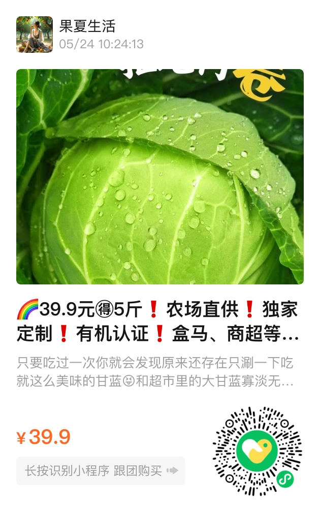 总结:有机黄心水果甘蓝以39.9元5斤的超值价格,为您带来健康与美味的双重满足。现摘现发、基地直供,清甜多汁的口感定能征服全家人的味蕾。趁活动速抢,把这份新鲜带回家吧!