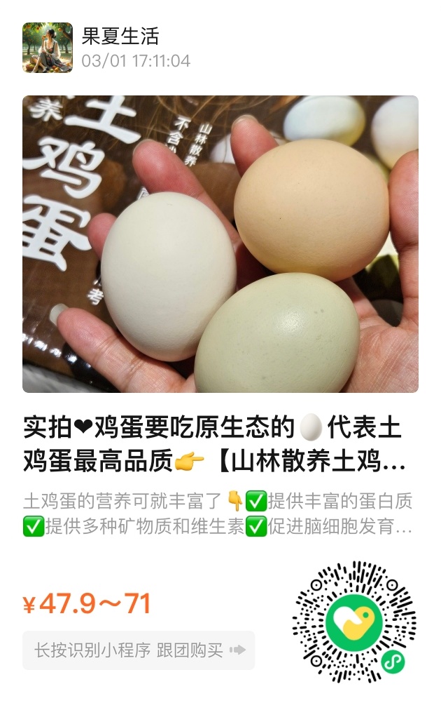 总结:山林散养土鸡蛋用最天然的方式还原食物本真,从源头保证品质,让每一餐都吃得放心、吃得满足。这份来自山林的礼物,值得您与家人细细品味。