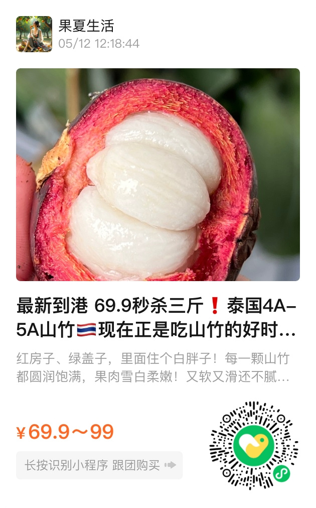 总结:泰国山竹是夏季不可错过的时令美味,清甜降火,营养满分。限时秒杀价诚意满满,新鲜直达,为您褪去暑热,送来健康与满足。