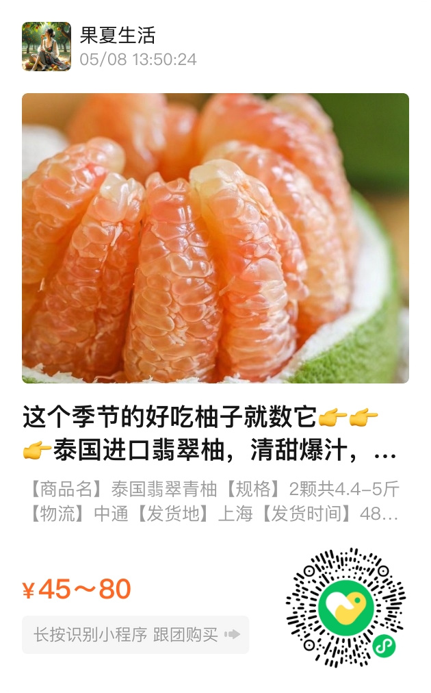 苏轼写过”一年好景君须记,最是橙黄橘绿时”,他若尝过这翡翠柚,或许要改成”青玉白瓤未染尘”。老上海弄堂里,姆妈们总把柚子供在米缸边,等它褪去旅途的疲惫。如今辉展市场飘着柚香,枝头的鲜直达餐桌,剥开的瞬间,溽暑忽然就远了。