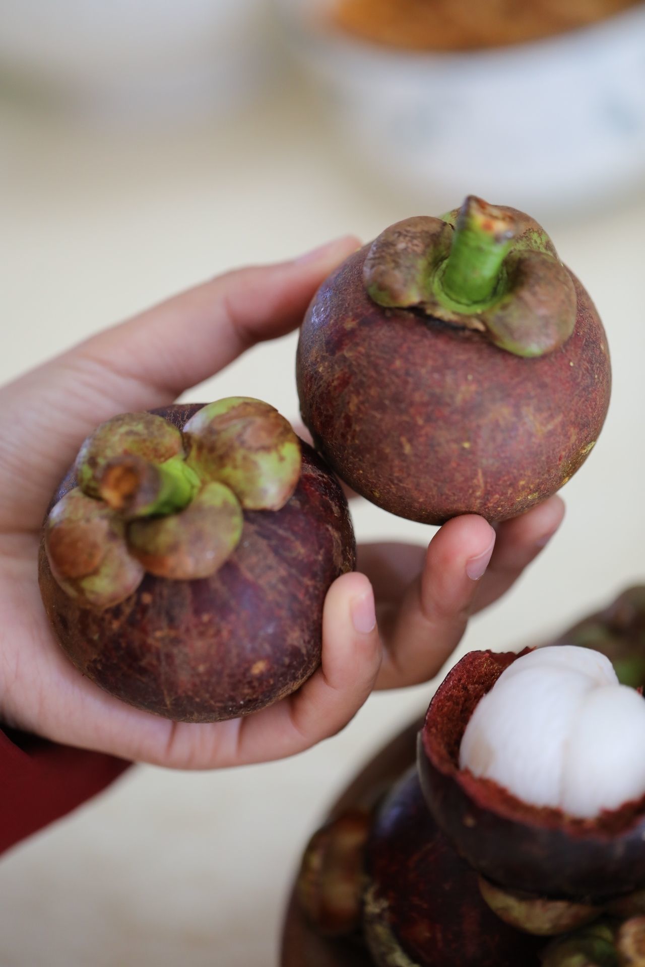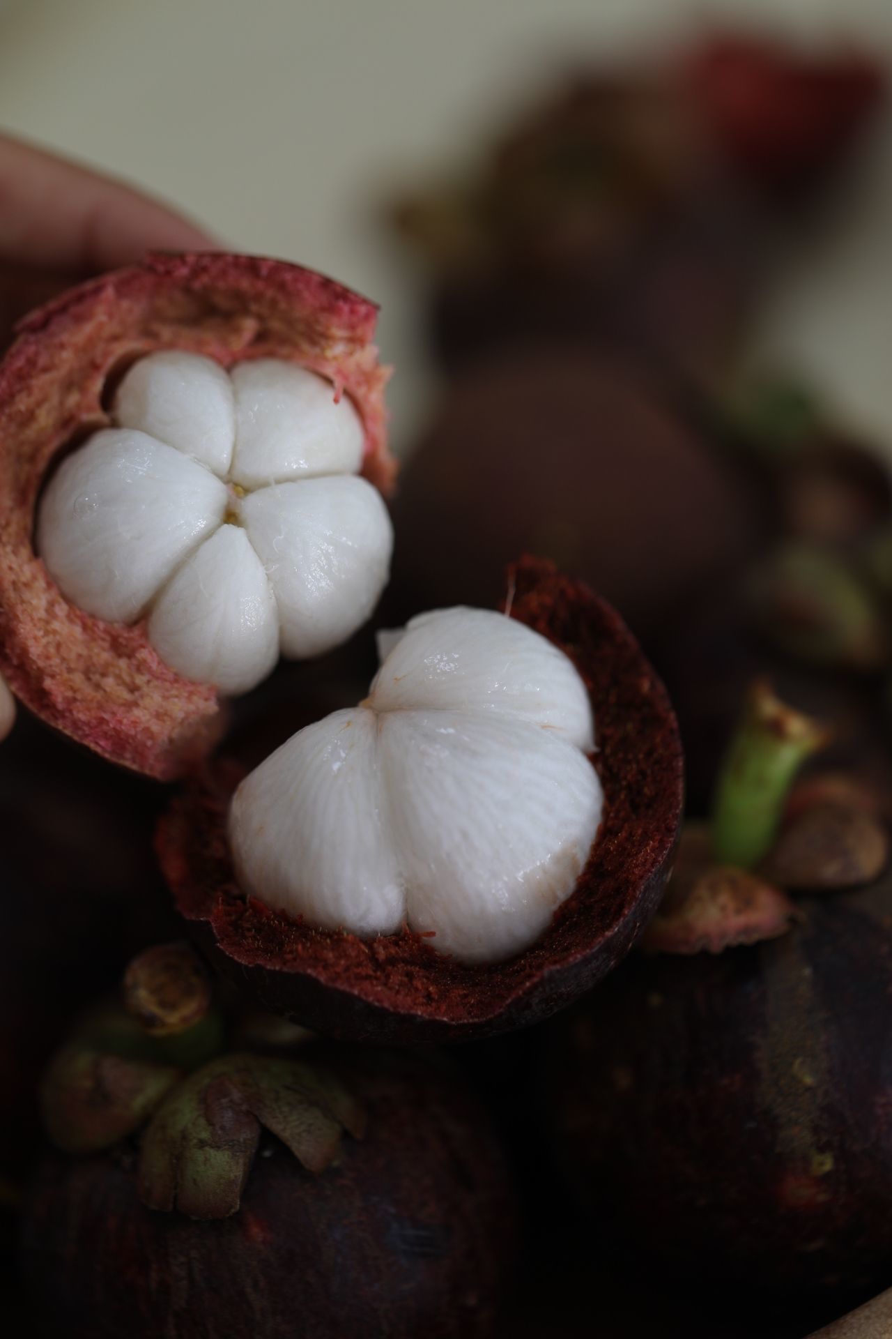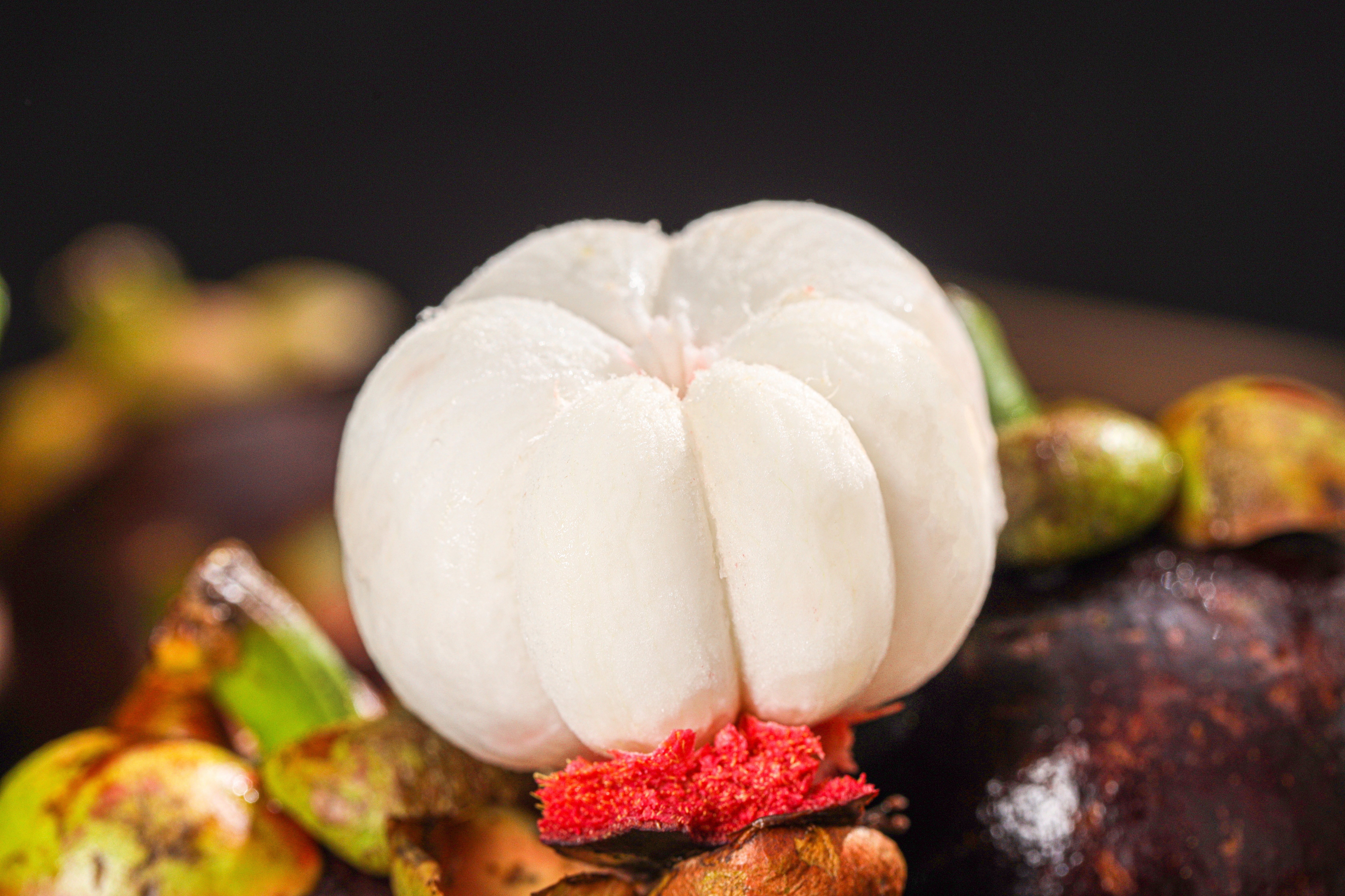 剥开粗粝果壳的瞬间,会遇见七八瓣白玉般的果肉相拥而卧。山竹的甜像是被山岚洗练过的荔枝蜜,带着东南亚季风特有的湿润感,尾调还藏着柠檬酸的俏皮。古暹罗人早就发现它降燥解热的妙处,现代科学则证明那些雪白果肉里藏着羟基柠檬酸的身影——大自然总是早于人类准备好答案。最有趣的当数果壳上的”花瓣预言”,数数顶端萼片就能知道内里藏着几房”白月光”,这是植物留给吃货的小小诗篇。