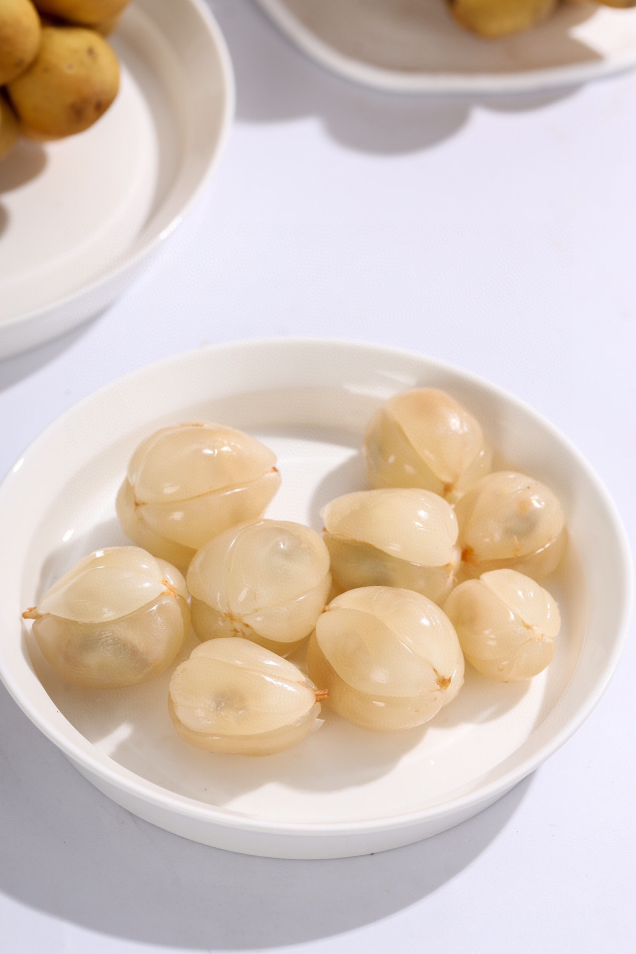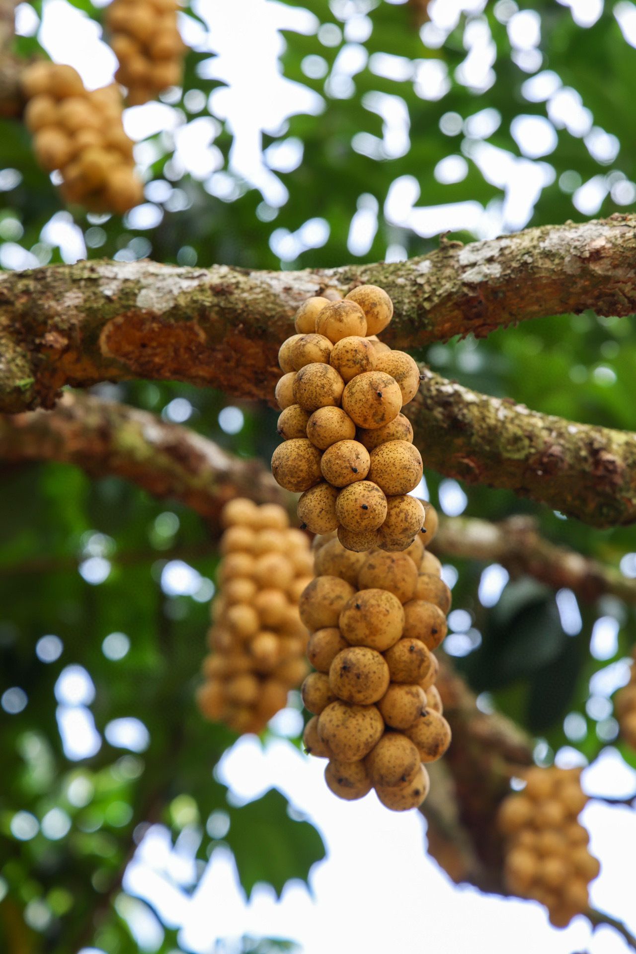 在泰国的古老传说里,龙宫果是龙王赠予人间的礼物。剥开它微黏的黄皮,果肉如珍珠般莹润,咬下去的瞬间,山竹的清甜、荔枝的蜜香、龙眼的醇厚交织在一起,尾调还藏着一丝青柠般的微酸——像极了年迈的果农在烈日下摘果时,额角滴落的汗珠里那点咸涩。这果子天生娇贵,离了热带雨林的闷热湿气便不肯生长,古时泰国王妃用它宴客,一盘龙宫果上桌,连外交辞令都染上了果香。