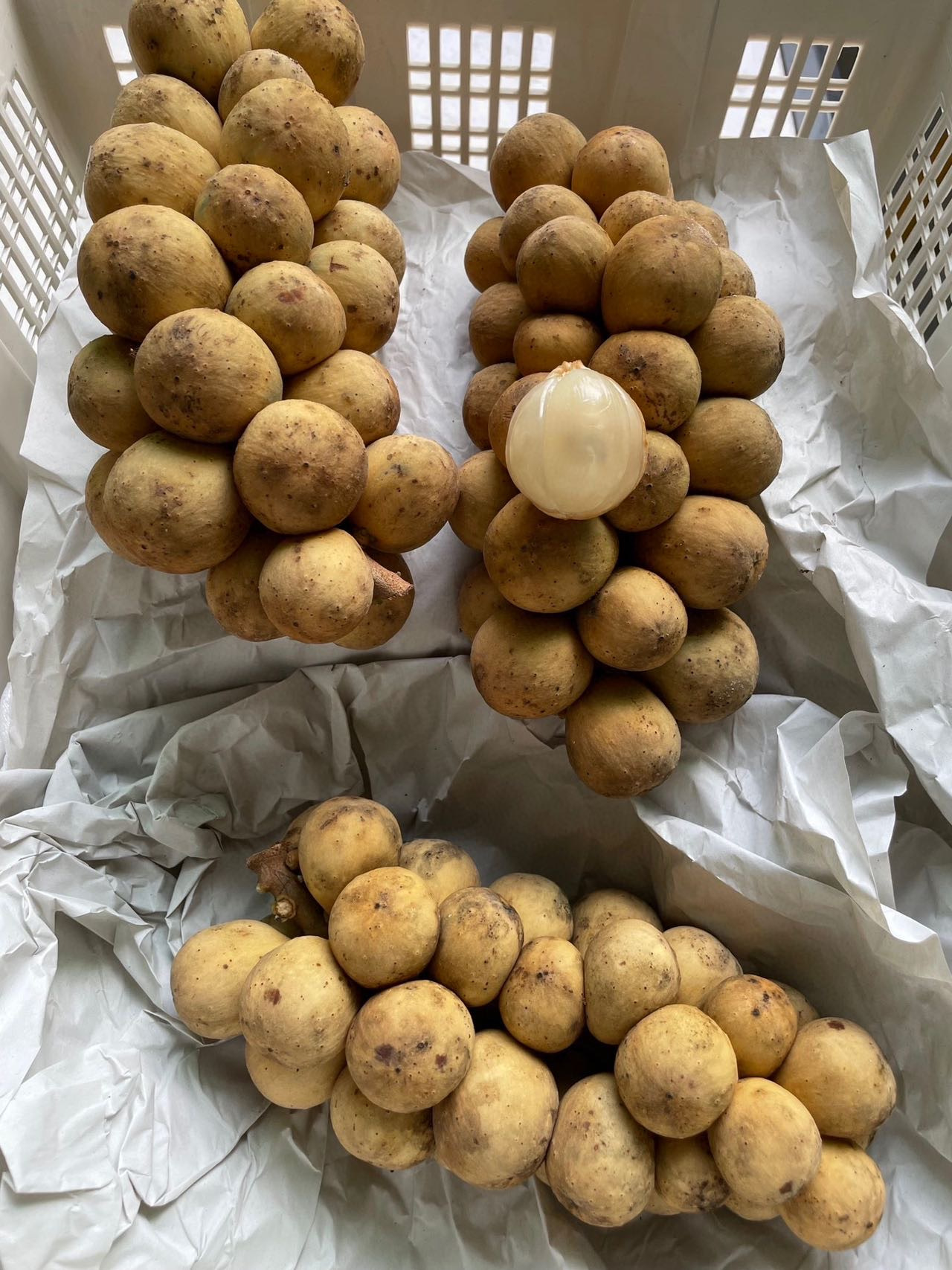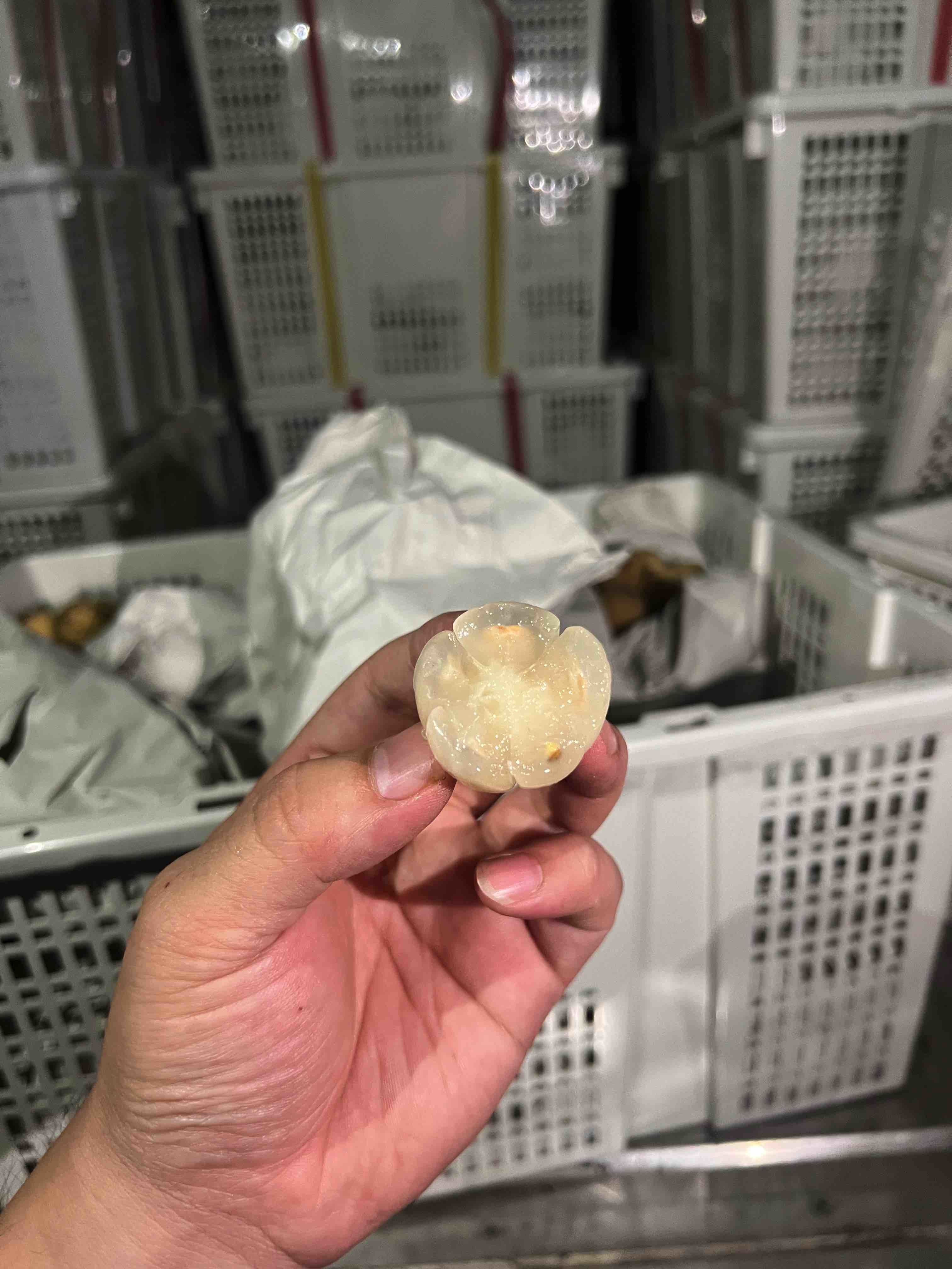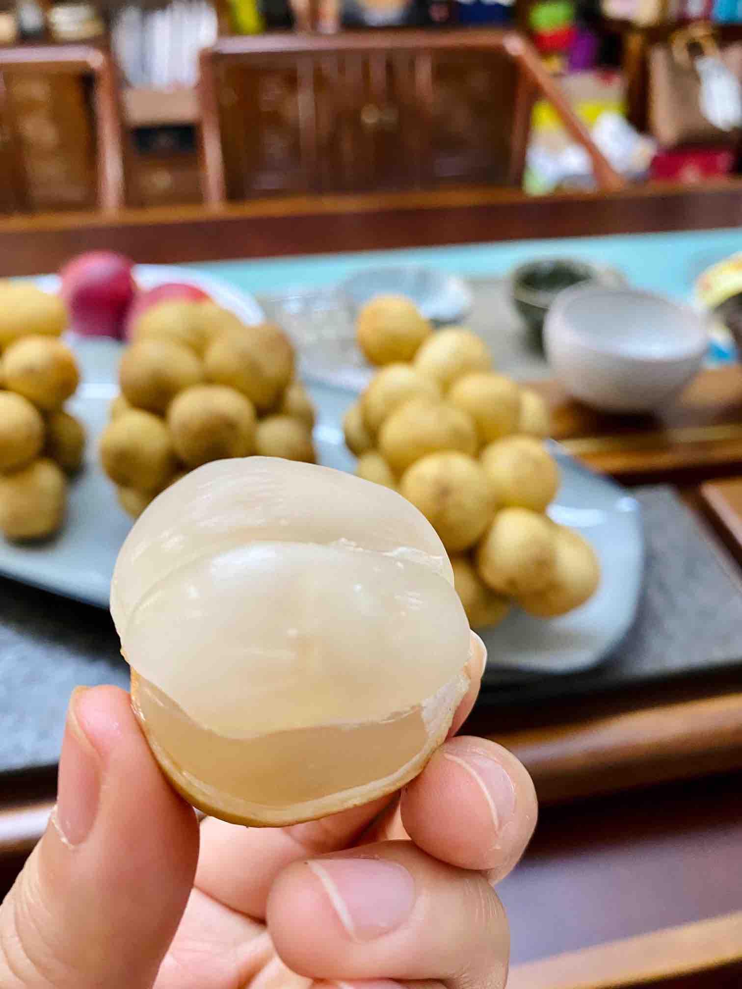 有人说它核苦,恰如它的别名”爱情果”。初次品尝时像少年心动,甜蜜汁水迸溅;不小心咬到果核时,苦涩漫上来,倒是教会人耐心——好东西总得慢慢剥开。那些附着果皮的黑色斑痕,是它抵抗酷暑的勋章,像极了东南亚妇女顶着陶罐行走时,脚背上晒出的斑驳阳光。空运来的龙宫果还带着枝叶的呼吸,每一颗都是穿过三千公里季风而来。