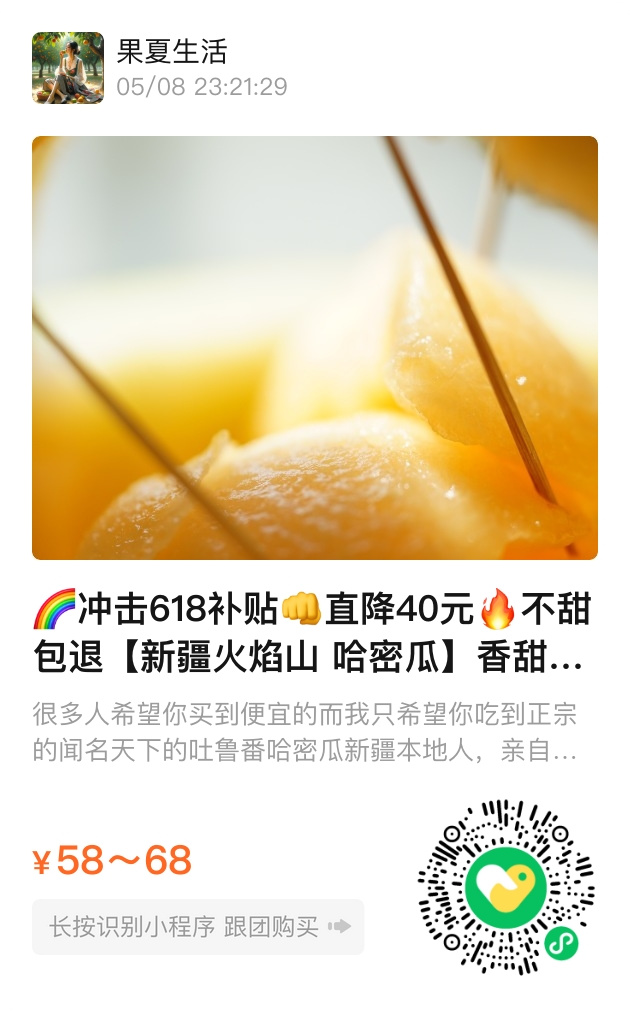 总结:正宗新疆火焰山哈密瓜,酥脆化渣、甜而不腻,618限时补贴,品质与实惠并存,抓紧品尝这份夏日甜蜜吧!