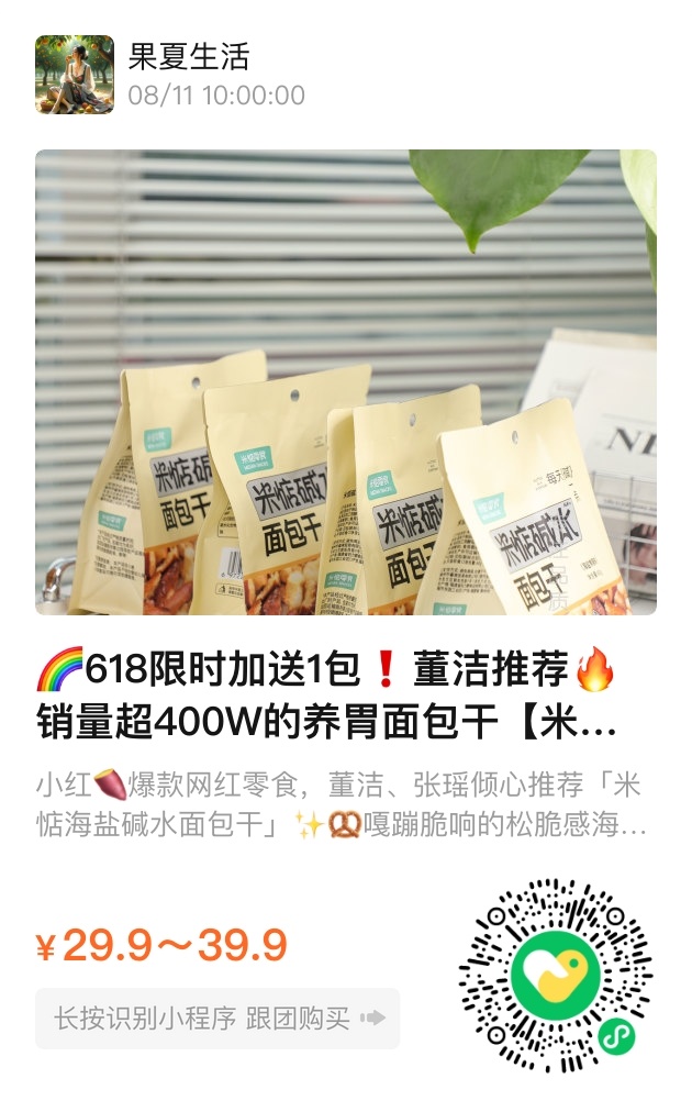 总结:米惦海盐碱水面包干用最简单的配料还原食物本味,碱水配方呵护肠胃,酥脆口感治愈疲惫。这个618,给自己或家人备上几包,让健康零食成为日常的小确幸吧!