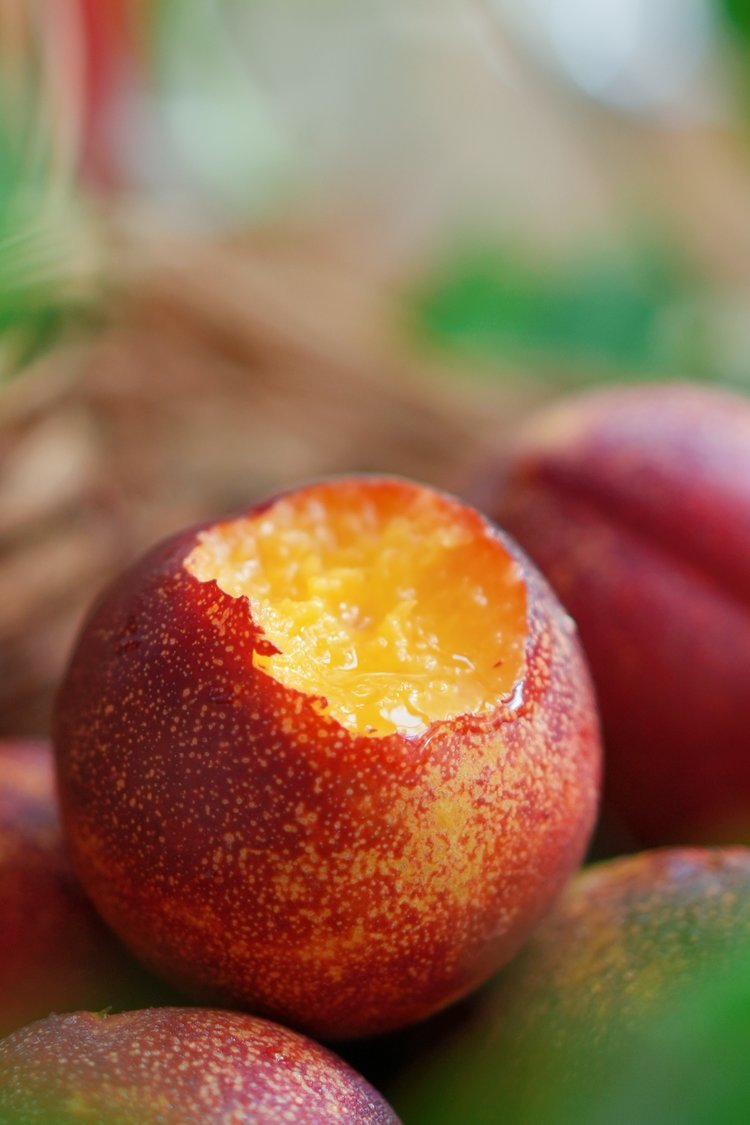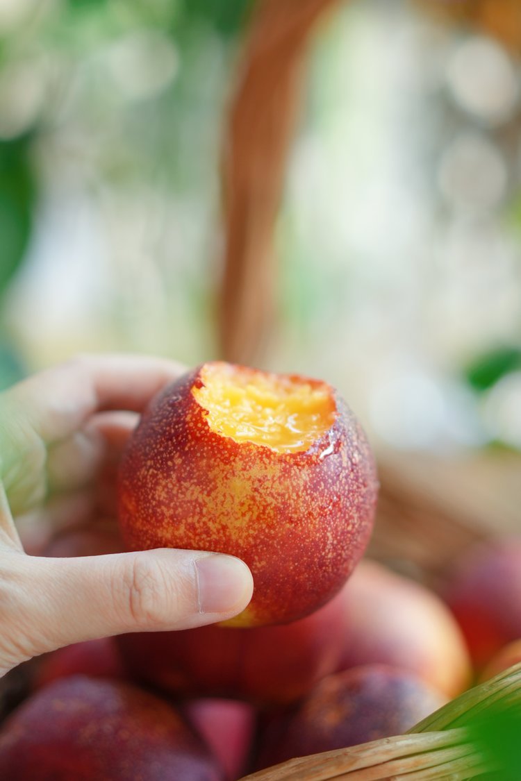 记得小时候在乡下外婆家,桃树下一躺就是一下午。那时的桃子小,皮上挂着斑驳的太阳吻痕,一口咬下去,金黄的果肉里沁着蜜,连指缝都是黏的。现在的桃子长得像打了蜡的工艺品,可那口魂牵梦萦的桃香,却在琳琅满目的水果架上迷了路。直到遇见半坡阳光的麻点油桃——树龄二十年的老树结的果,表皮油亮亮的像裹了层琥珀光,那些看似缺憾的麻点,其实是阳光盖下的邮戳。