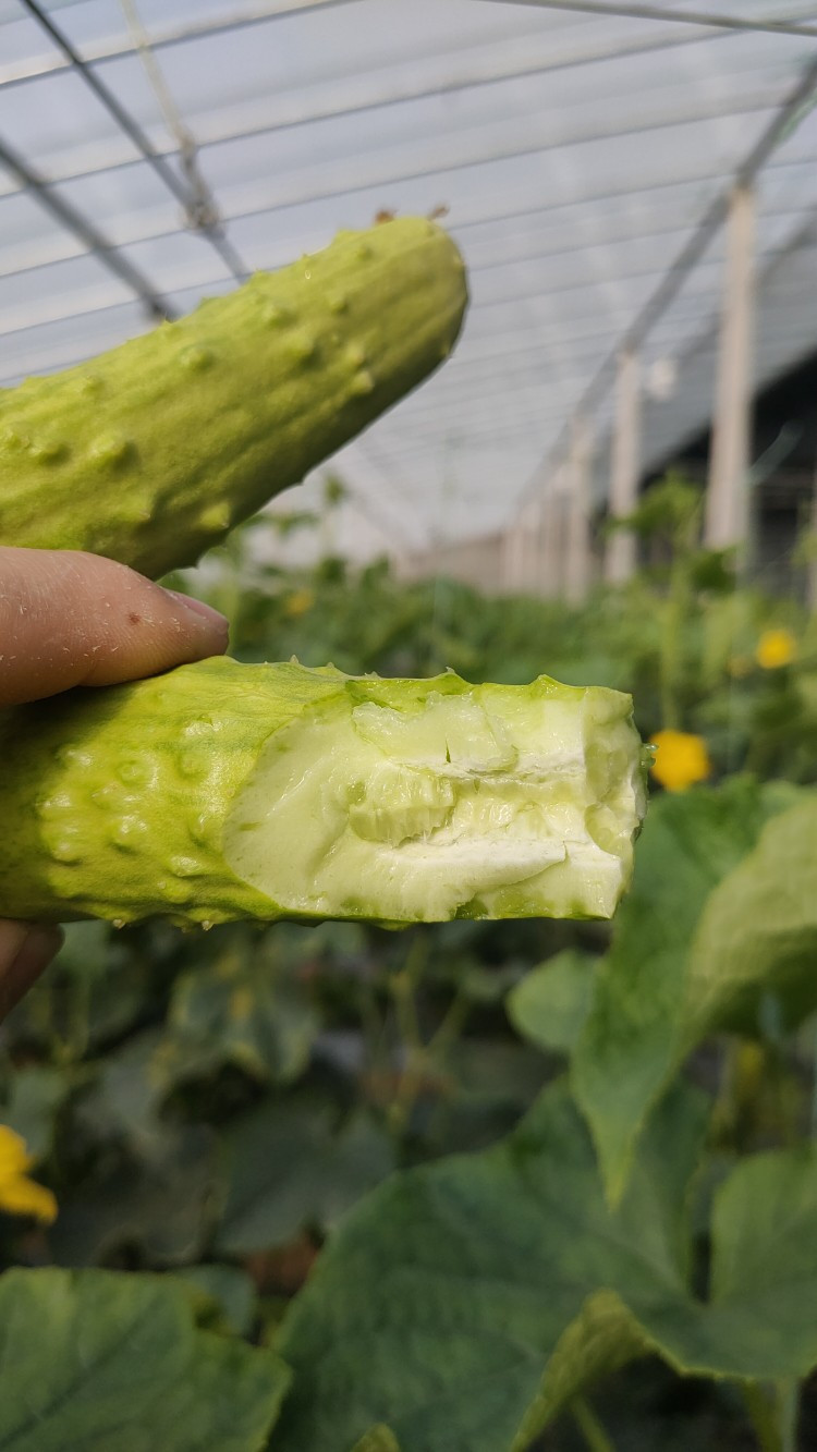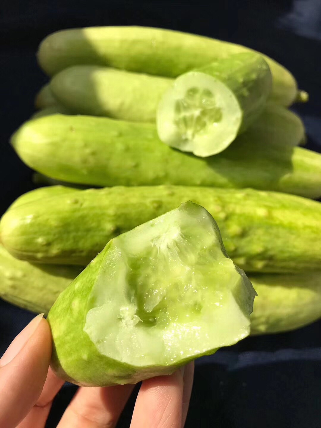 白玉黄瓜的可爱,在于它既有少女的娇嗔又有老农的倔强。豆粕作底肥、牛奶当饮料,种瓜的老把式们像照顾婴儿般守着这片土地,连益菌都成了防虫的”贴身护卫”。所以它敢以”水果”自居——皮薄到能忽略不计,汁水丰沛得像咬破一颗晨露,糖度比普通黄瓜高出两度,却偏偏低热量到让减肥党感激涕零。难怪海阳人叫它”梨园白”,这分明是黄瓜界的青衣名角,一登场就让人忘了那些皮厚籽多的”龙套选手”。