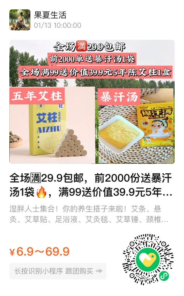 暖冬特惠来袭: 即日起下单满29.9元即享包邮,前2000名赠暴汗汤1袋(助排湿寒),满99元额外加赠价值39.9元的5年陈艾柱1盒。把专业艾灸带回家,这个冬天,让身体从内到外暖起来!