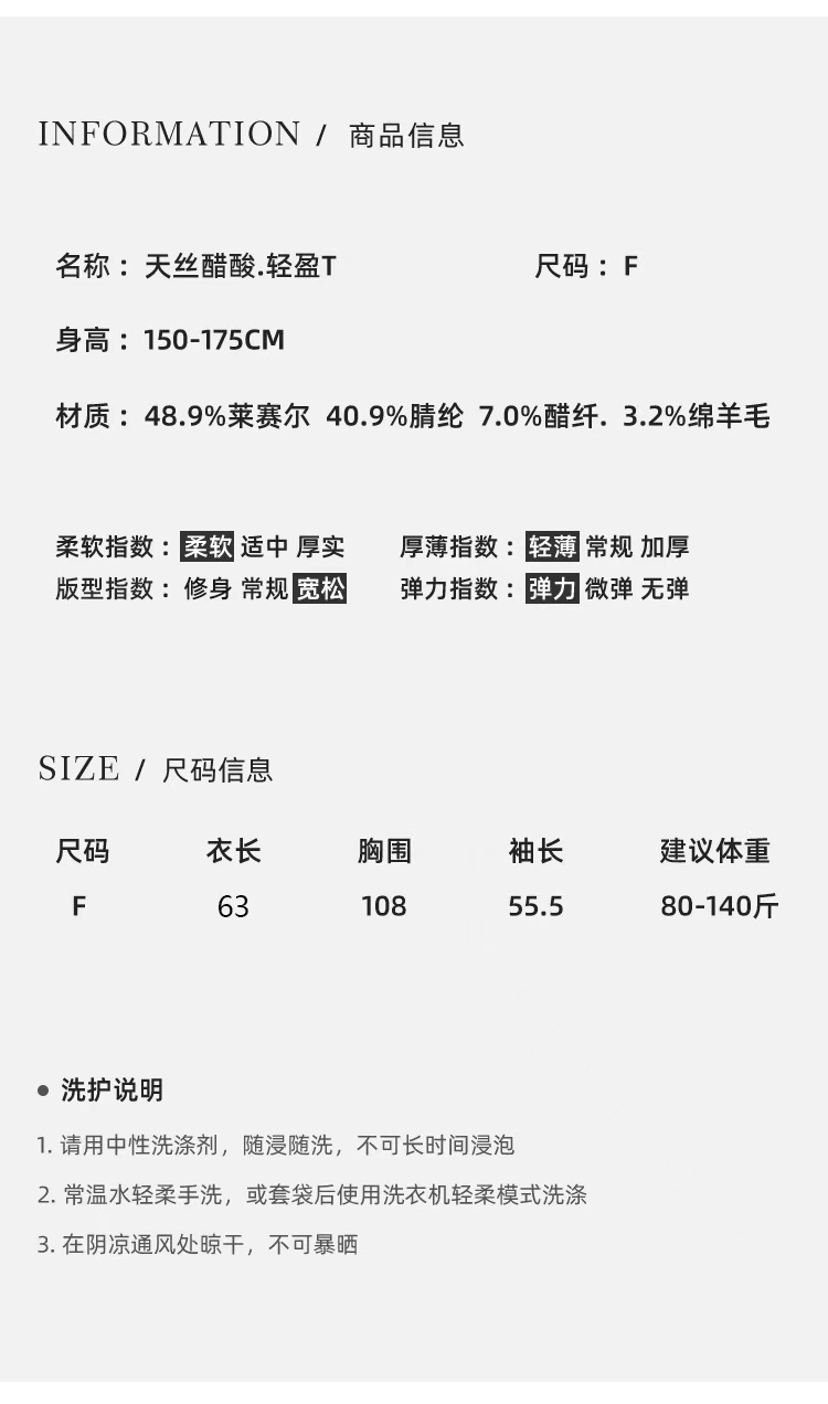 总结: 从黄金配比面料到显瘦剪裁,这款T恤用细节诠释了“低调奢华”。它或许会成为您今夏穿得最多、夸得最勤的那件心头好——因为真正的好衣服,自己会说话。