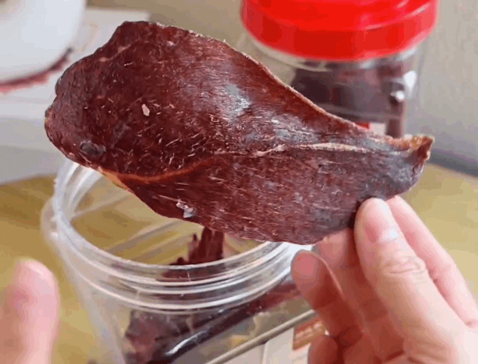 翻开配料表,干净得像草原的蓝天。没有科技与狠活,只有黄牛后腿肉在低温排酸里修炼出的鲜嫩,再被炭火烤出微微翘起的金黄边缘。香辣味是马背民族的豪迈,辣椒像套马杆一样拽住你的味蕾;原味则是晨曦中的牧场,纯粹得能尝到草尖的露水。忽然理解游牧民族为什么总带着风干肉——若当年成吉思汗的粮草里有这罐薄脆,怕是能一路”嘎嘣脆”地打到欧洲去。