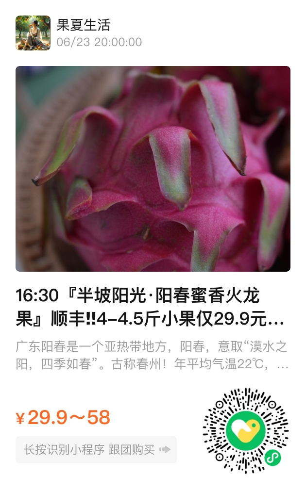 总结:阳春蜜香火龙果以岭南风土为画布,用九成熟的等待描绘出清甜爽脆的滋味。从台湾远道而来的新品种遇见阳春山水,成就了红宝石般的果肉与二十度的自然甜韵,每一口都是亚热带阳光的实体诗集。