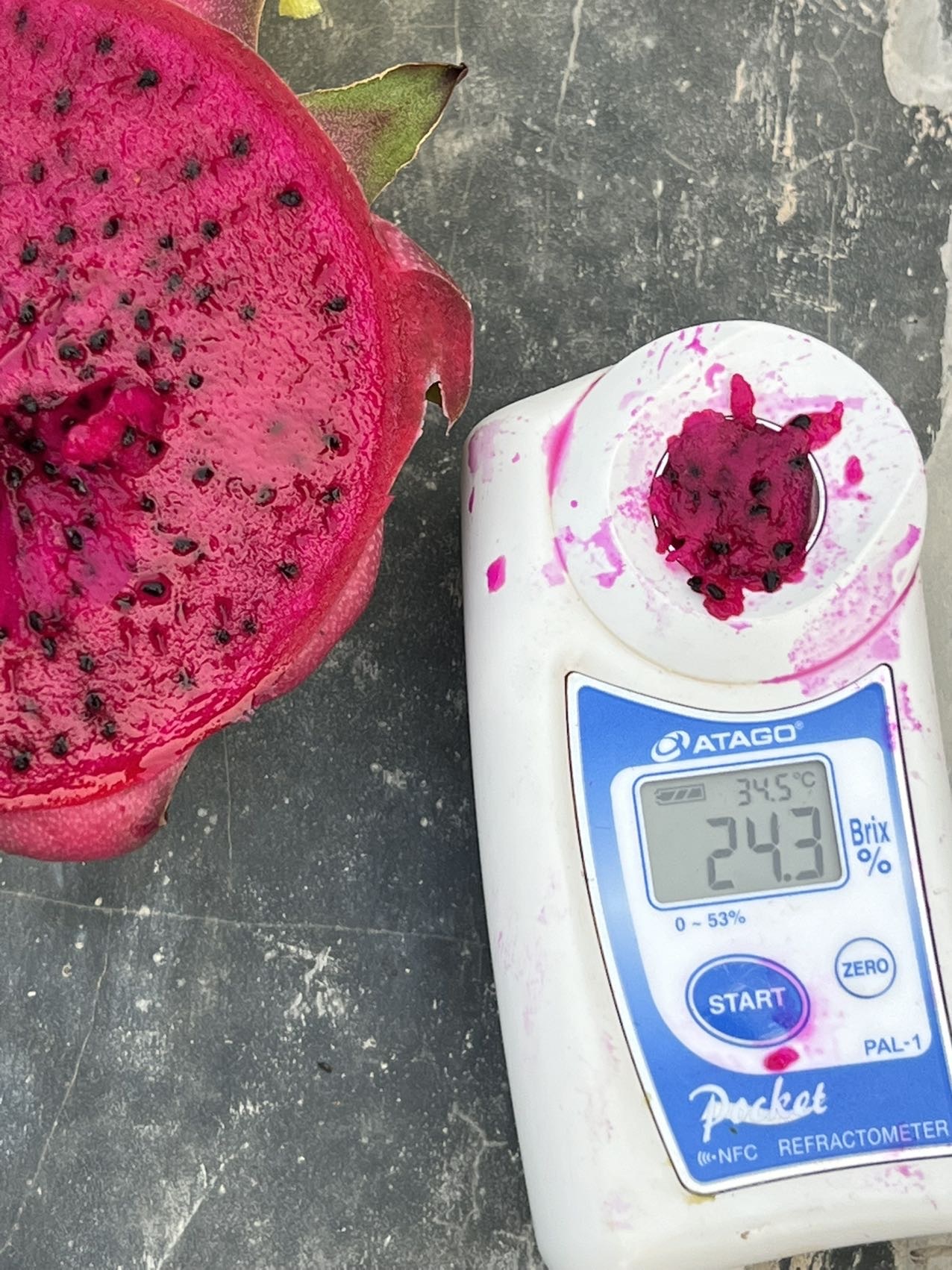 岭南的夏天总是来得特别早,阳光穿过云层洒在阳春的果园里,火龙果树像一支支绿色的烛台,托着绛红色的果实。这块被称为”漠水之阳,四季如春”的土地,两千小时的年日照让每颗蜜香火龙果都蓄满了阳光的甜。想起苏轼在惠州时写”日啖荔枝三百颗”,若他尝过这九成熟才下树的火龙果,怕是要改写成”半颗红玉齿留香”了。