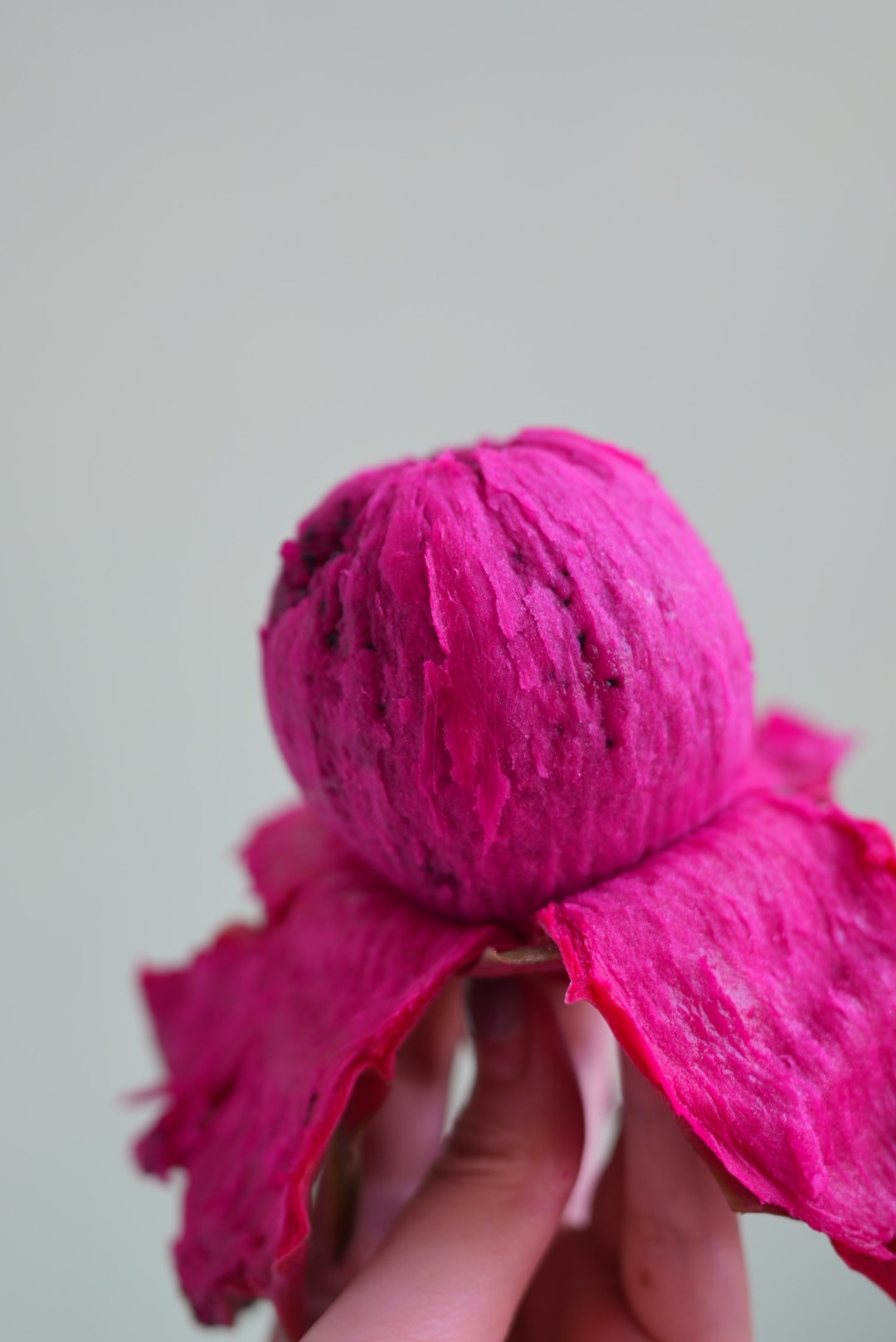 凌晨四点摘果的农人指尖还沾着露水,他们懂得九成熟是甜度的分界线。施有机肥的土壤里藏着一季季的耐心,山风吹过果园时,连蝴蝶都停在饱满的果实上小憩。放在冰箱里冰镇片刻,挖一勺果肉,便是对抗炎夏最风雅的武器。这让人想起张爱玲说的”时光的缎子”,蜜香火龙果的滋味,就是岭南时光织就的一匹甜缎。