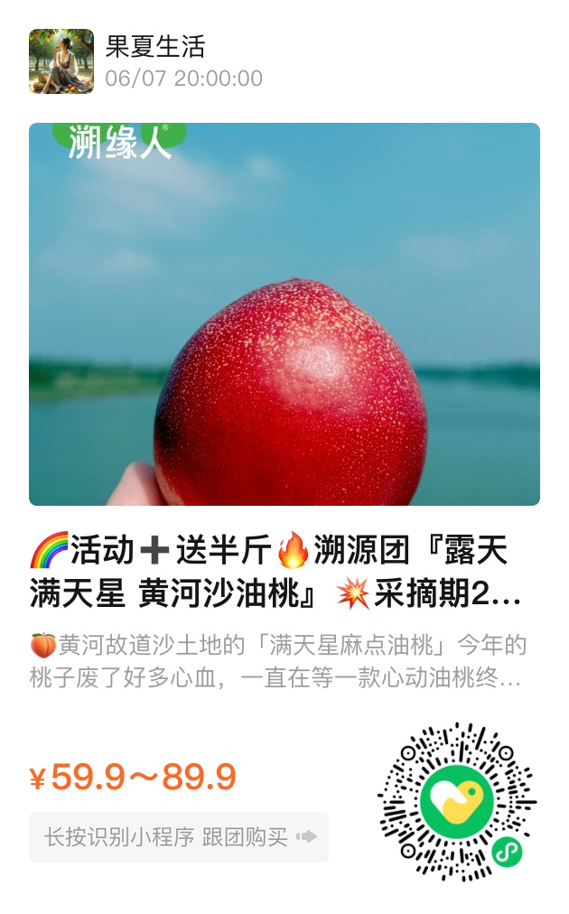 🌈 活动加赠半斤! 溯源团直采露天自然熟油桃,仅20天采摘期,顺丰包邮到家。这一口星星点点的甜,是干旱与风土共同写下的诗。