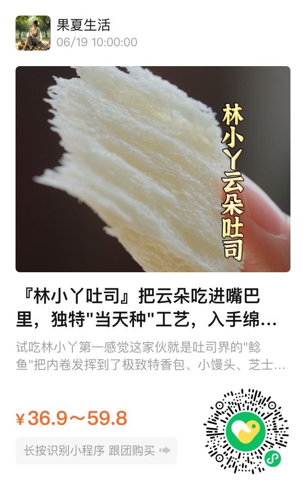 林小丫云朵吐司用细节诠释品质,以真诚打动味蕾。这不是一次性的惊艳,而是愿您每一天都能被温柔以待的长期陪伴。