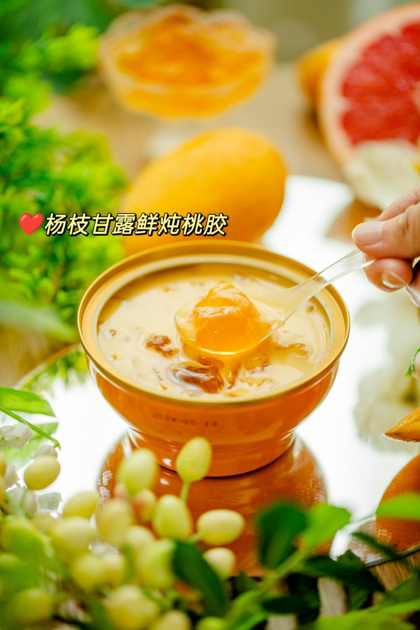 老街口的榕树下,阿婆总爱念叨“春吃桃花,夏食桃胶”。桃树分泌的琥珀色胶质,古人唤它“桃花泪”,《本草纲目》说它能和血益气,像一位温润的老友,不言不语却悄悄抚平岁月的痕迹。稳爸简方的小金碗里,盛着的正是这份温柔——椰汁芡实款如江南烟雨,乳白的椰浆裹着粉糯芡实,银耳与桃胶炖出胶质的绸缎感;杨枝甘露款则像岭南盛夏,芒果香混着西柚的微酸,每一勺都能咬到软弹的桃胶,比奶茶店多三分诚意,少七分甜腻。