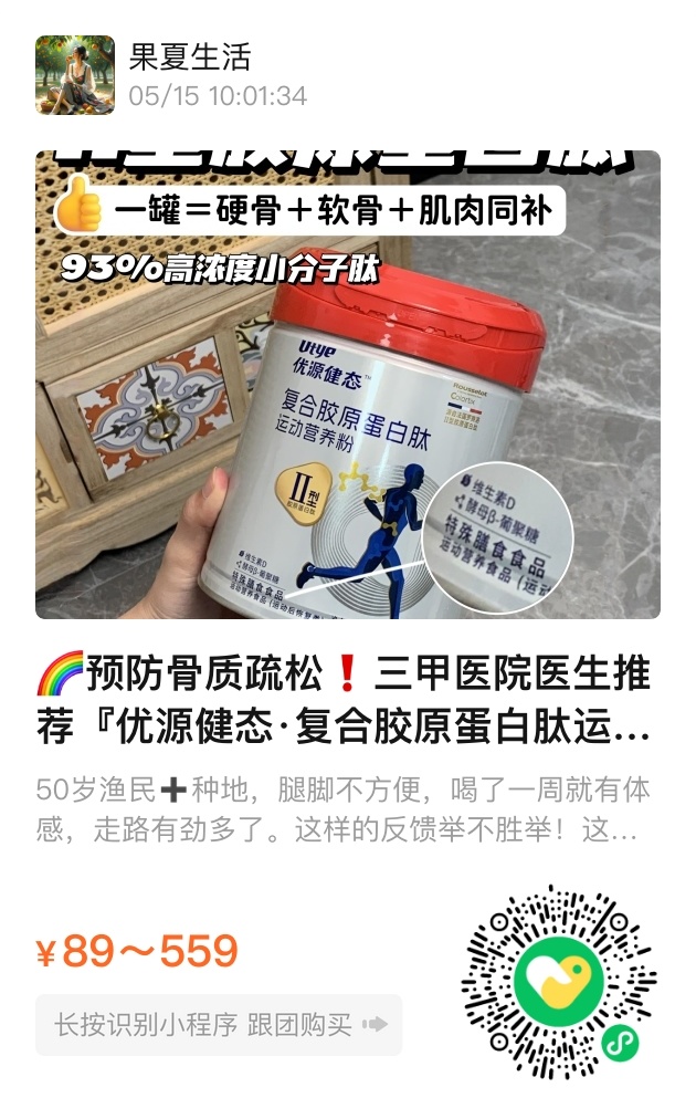 胶原蛋白的江湖里总有误解:补钙派和氨糖党争论不休,却忘了骨骼需要的是“团队协作”。优源健态用BON-FIT筑骨技术调和这场纷争,如同中医讲究的“君臣佐使”,让法国进口胶原、有机钙和维生素D各司其职。那些复购60罐的家庭,把产品罐子堆成了现代版的“千金方”,外婆在疗养院的安利比明星代言更动人。当你发现抱娃的腰不再刺痛、父母爬楼梯时膝盖不再沉默抗议,便会明白:所谓健康,不过是让身体的每个零件,都能温柔地陪伴我们走过更长的岁月。
