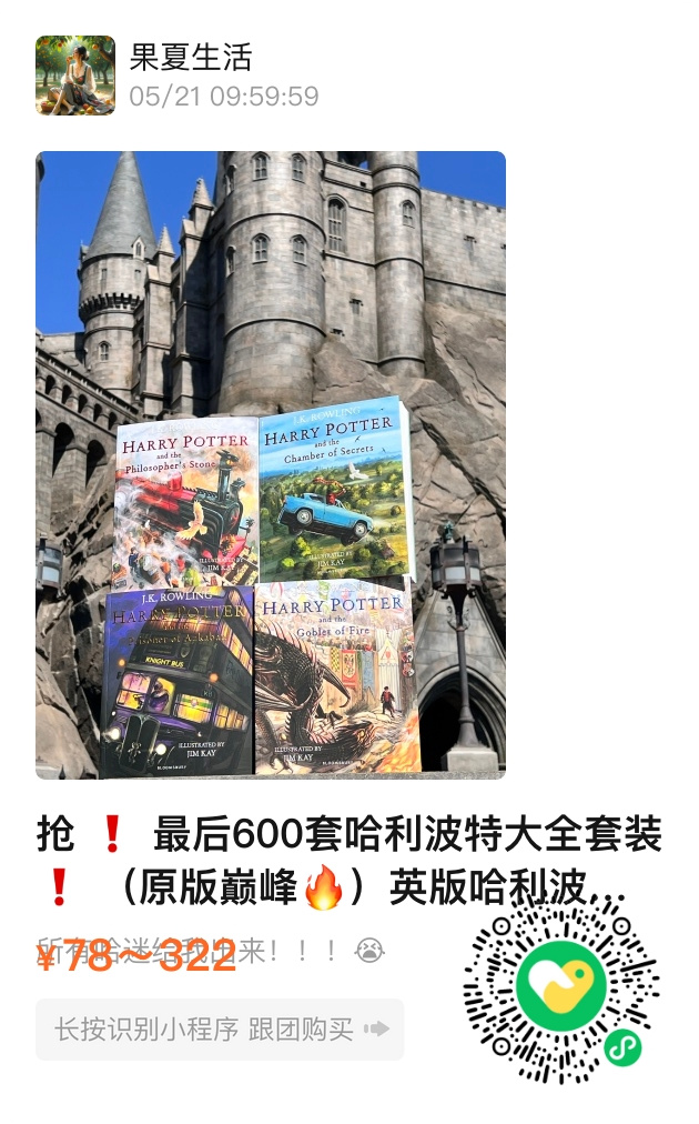 总结: 哈利波特英版彩绘套装以纯正的原版魅力、精良的制作和超值赠礼,为每位读者打开魔法之门。活动仅剩最后600套,愿您与孩子一同踏上这场永恒经典的奇幻之旅。