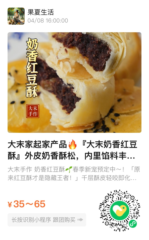 小时候读王维的“红豆生南国”,总觉得那一颗颗殷红的豆子里藏的是诗人的惆怅。后来才懂,红豆的甜,是烟火人间里最踏实的念想。大末家的奶香红豆酥,便是把这念想揉进了酥皮里——安佳黄油层层叠叠擀出的酥,轻轻一碰就簌簌落进掌心,像江南春雨后抖落的梨花。