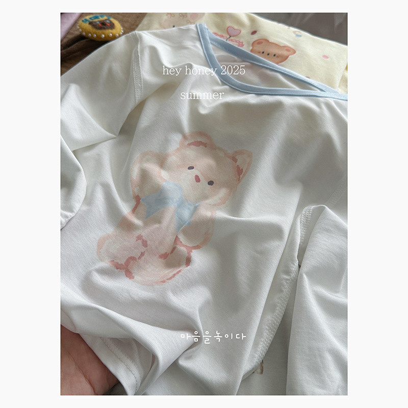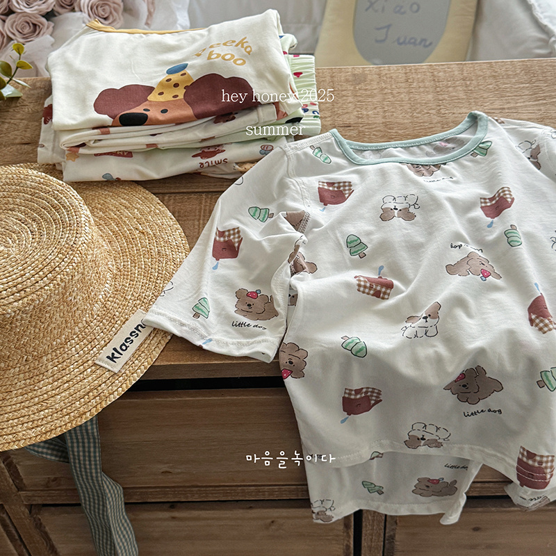 想起小时候,母亲总爱在盛夏的傍晚拧一盆井水,把棉布衣裳浸得透凉才让我换上。那时的凉意带着土地的质朴,而今天丝莱赛尔面料带来的清凉,却像轻抚过竹林的风——天然纤维织就的织物,吸湿排汗如荷叶疏水,孩子蹦跳后背上不再黏着汗渍,只有微风穿过的清爽。那些卡通图案不是简单的印花,小熊托着奶油蛋糕、小狗追着彩虹条纹,分明是童话书里蹦出的片段,裹着稚嫩的梦。