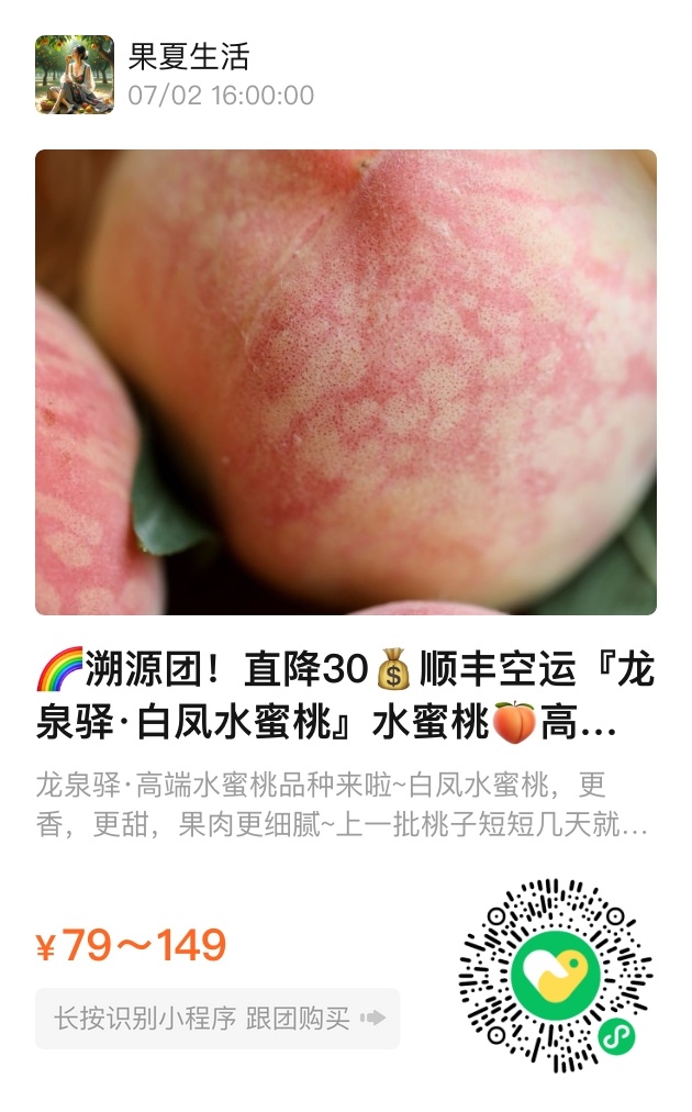 溯源团特别活动:即日起龙泉驿白凤水蜜桃直降30元,顺丰空运锁鲜直达。试吃装6枚彩箱或4.5斤家庭装,让晨露与暮霭的滋味在舌尖重逢。
