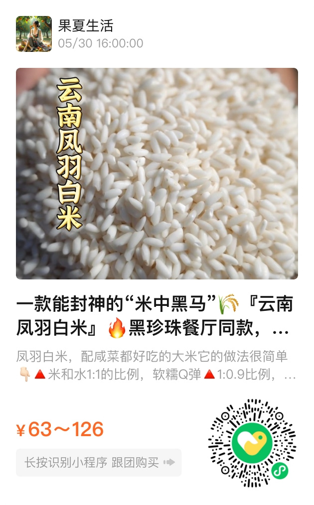 限时活动:今日下单即享新品尝鲜价,四斤装赠云南特产手工腐乳一罐(限量100份)。每一袋凤羽白米都带着雪山农人的坚持,从火山红壤到非遗农耕,这份纯净值得被更多人品尝。