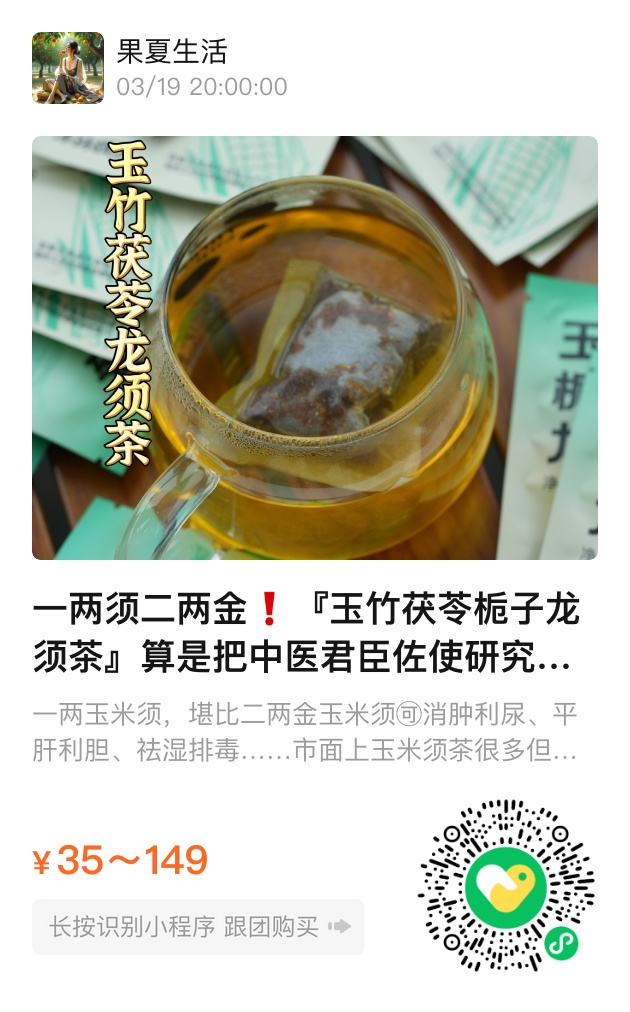 三伏天的午后,老药工取下檐下风干的玉米须,指尖搓捻时沙沙作响。古人称它”龙须”,《滇南本草》里写它能”宽肠下气”,像位举重若轻的江湖游医。但真正的智慧在于配伍——就像苏轼在《东坡志林》里记录的药方,君药攻坚,臣药辅佐,佐药调和,使药引经。这包玉竹茯苓栀子龙须茶,便是把千年的中医哲学,化在了氤氲茶汤里。
