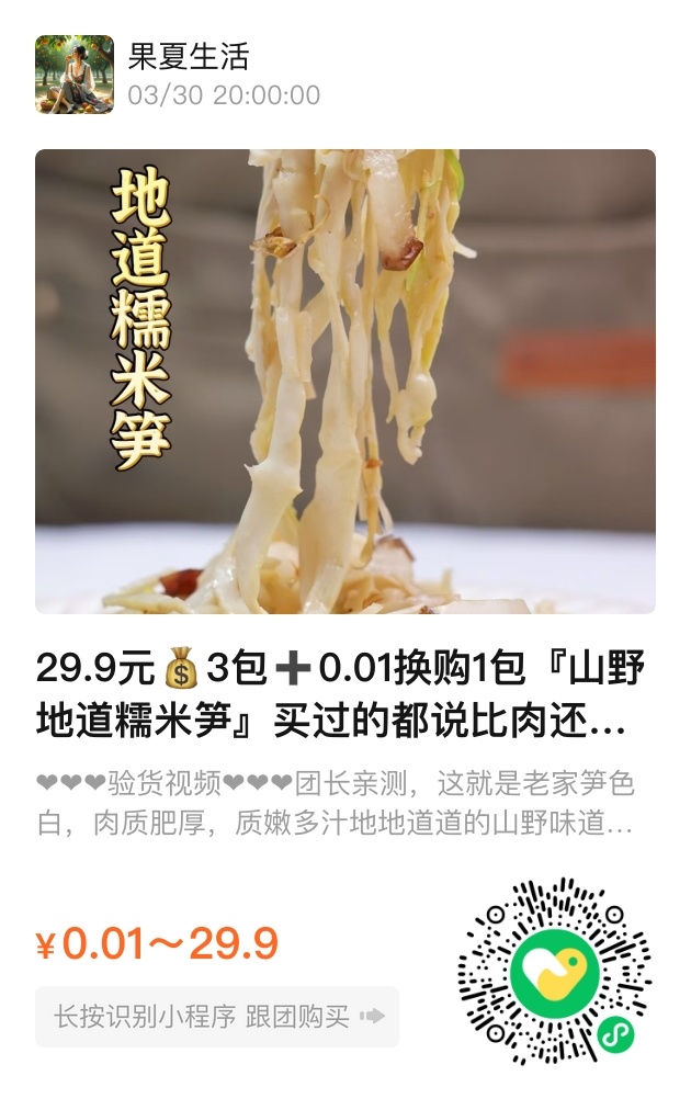 曾有个北漂的江西朋友说:“吃过糯米笋,才知道什么叫‘鲜得掉眉毛’。”29.9元三包的价格,像极了老家亲友捎来的心意。不必夸张它比肉还好吃,但清晨煮粥时扔几根,午间凉拌时淋勺辣油,深夜煮面时添一把,平凡的日子忽然就亮了起来。白居易写“紫箨坼故锦,素肌擘新玉”,原来最动人的烟火气,就藏在这乳白色的笋丝里。