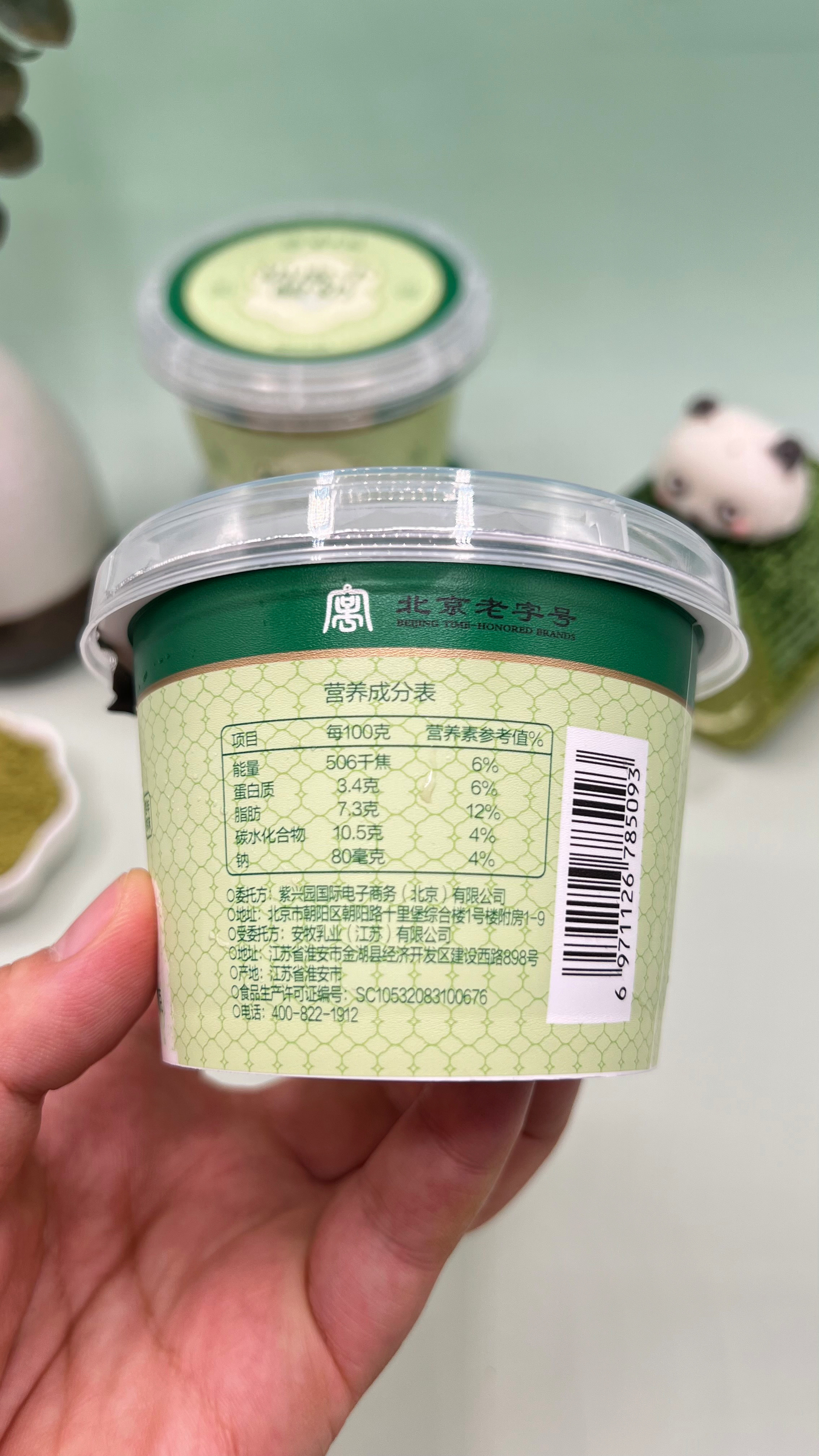 这杯酸奶的背后,是研发团队数十次调试的执着,从奶皮成型到抹茶均匀融合,每一步都倾注了无数心血。淡绿色的雅致包装镌刻着如意纹与石狮图腾,既传递京味文化的厚重,又暗藏“吉祥守护”的深意。撕开盖膜的瞬间,苔藓清香扑鼻,厚厚奶皮裹挟抹茶的微涩与乳酪的浓香,仿佛所有烦忧都被这一口温柔化解。