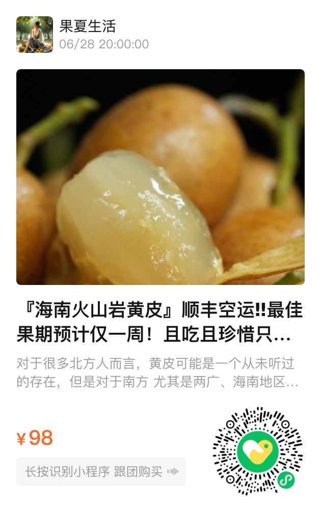 对许多人来说,黄皮或许是个陌生的名字,但在海南和两广地区,它是夏日的专属期待。皮薄肉嫩、酸甜适口,还带着独特的蜜香,这样的滋味,吃一次就难忘。可惜黄皮果期极短,又娇嫩难运输,能在最佳状态吃到的机会实在难得。正因如此,我们想把这口来自海南永兴镇火山岩产区的珍稀美味,第一时间送到您手中。