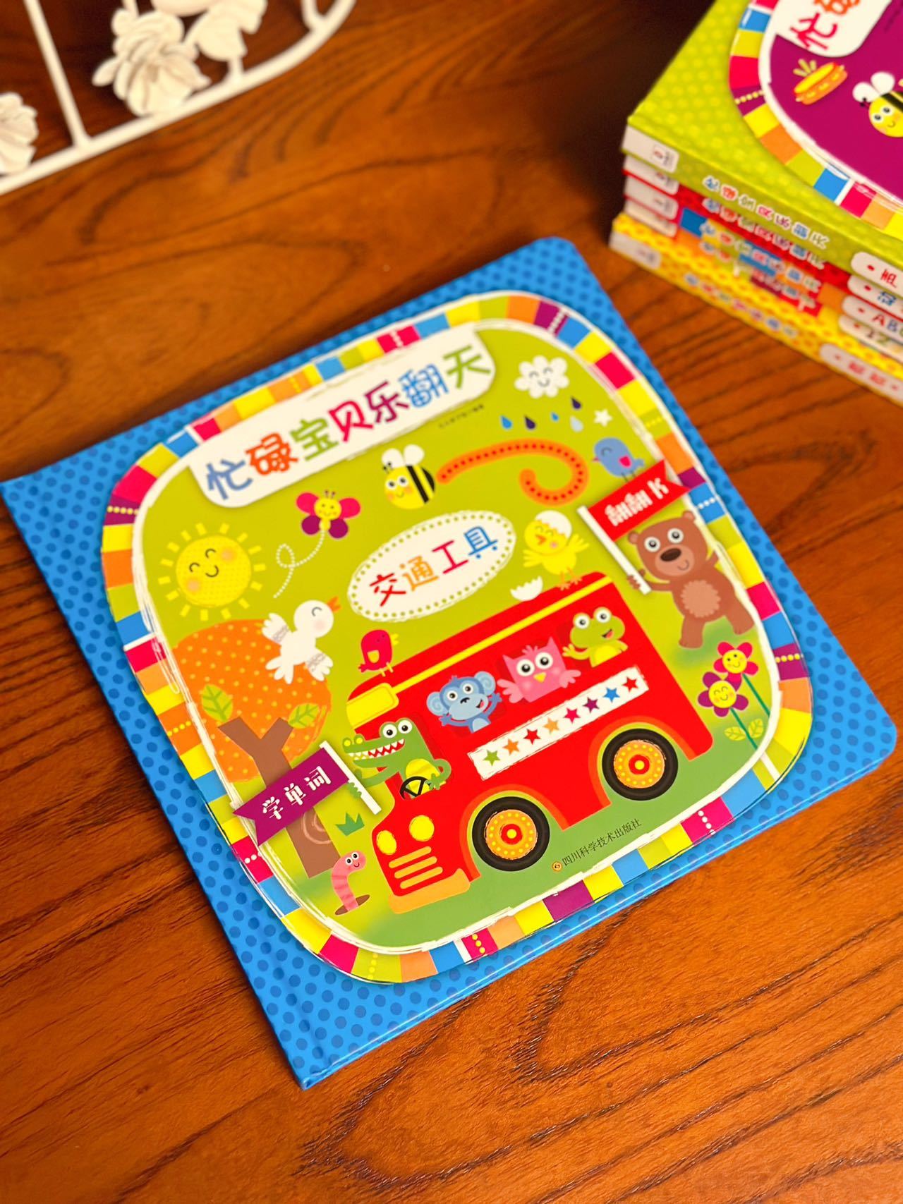 翻开这些书,仿佛打开了一个微观的童话世界。每一页的机关设计,像藏着小小的惊喜,等着孩子用稚嫩的手指去探索。《交通工具》里车轮的转动,《动物》中翅膀的扑簌,这些细节不仅是知识的传递,更是感官与想象力的启蒙。中英双语的文字,像一对温柔的翅膀,轻轻托起孩子对语言的最初好奇。我们常说“寓教于乐”,而这套书真正做到了——它不是冰冷的纸页,而是能捏在手里、咯咯笑出声的温暖陪伴。