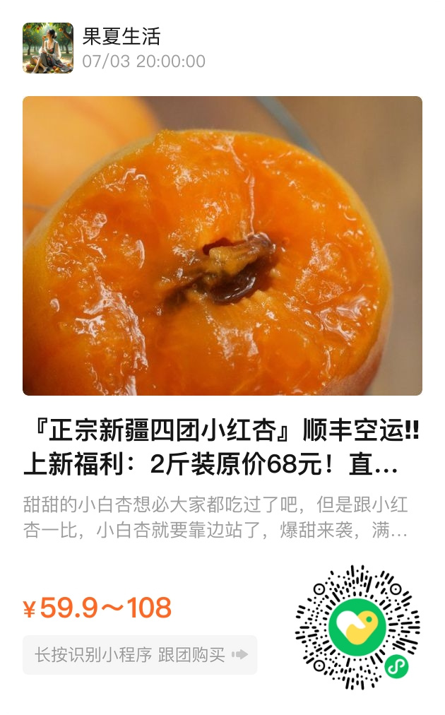 总结:从西域骄阳到掌心温柔,四团小红杏用一口爆汁的甜蜜,讲述着风土与匠心的故事。限量的不仅是果实,更是新疆夏天最浓烈的告白。