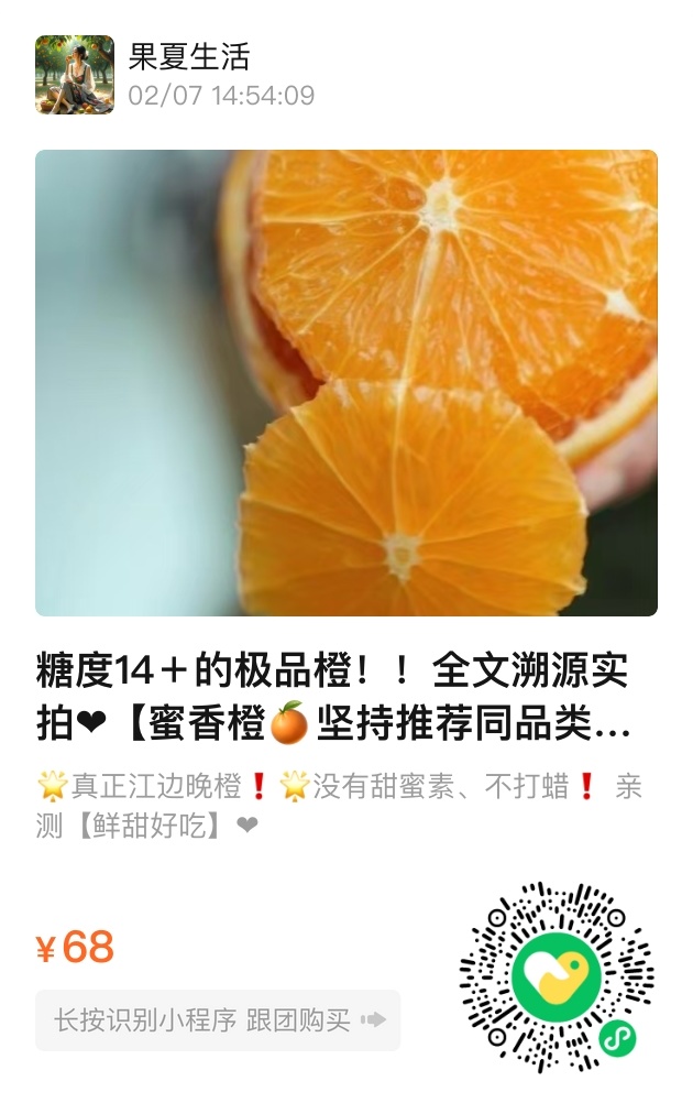 那些追求速成甜味的浮躁,在这里显得格格不入。自然的味道从来不需要甜蜜素的粉饰,就像真正的好文章不需要华丽辞藻。蜜香橙守着四季更替的本分,沉淀出纯粹的果味。这一口清甜里,藏着长江岸边最朴实的智慧。