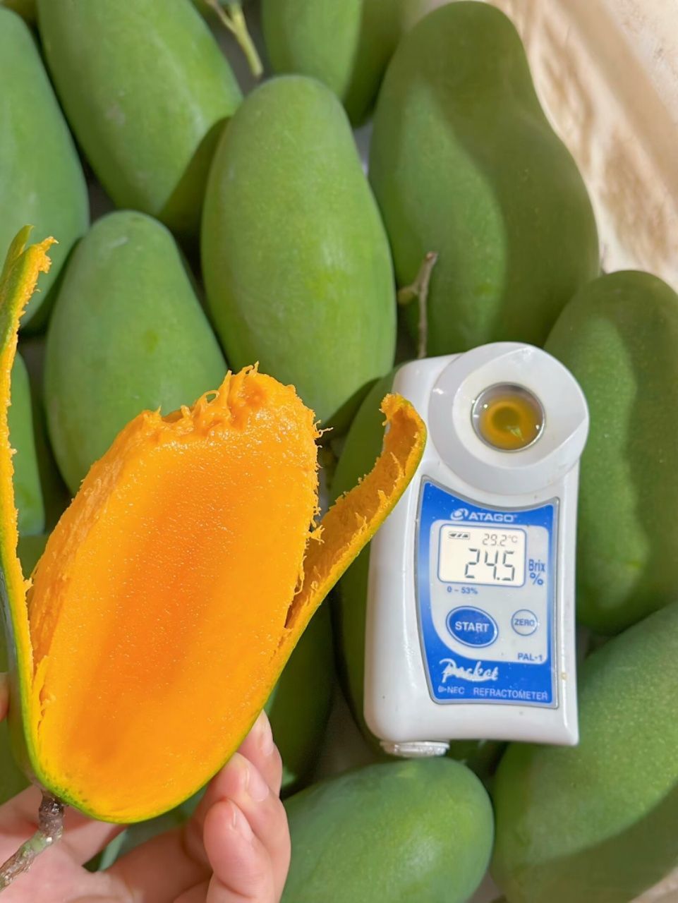 苏轼在惠州吃荔枝时惊叹”日啖荔枝三百颗”,若他尝过椰香芒,怕是要为这带着乳香的甜蜜改写诗篇。攀枝花的阳光是有魔法的,白昼如海南般炽烈,夜晚似春城般清凉,2700个小时的日照像金线般绣进果肉,每一口都是20度甜的阳光结晶。农人踩着晨露采摘时,指尖沾上的不是普通芒果的黏腻,而是化不开的椰奶香,连山谷间的风都带着微醺的甜。