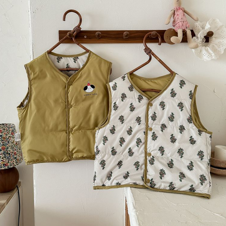 十种颜色摆在眼前,倒像是打翻了莫奈的调色盘。韩系的灰熊猫带着竹林墨韵,北欧风的绿花藏着森林松香,小姑娘穿上竖条狗的花样跑跳,活脱脱从童话书里蹦出来的插画。双面穿的巧思,像极了中国老话“一件衣裳两样情”——清晨是职场人的利落,傍晚是遛狗时的慵懒。这马甲不挑人,就像陶渊明的菊花,南山下谁都能赏得一份自在。