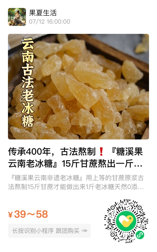 总结:糖溪果云南老冰糖,用传承与匠心守护舌尖上的自然甘甜。无论是日常烹调还是滋养身心,这份来自甘蔗原乡的纯粹味道,值得与家人细细分享。