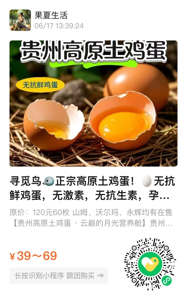 一颗好蛋的修养,藏在细节里。普通鸡蛋的蛋黄用筷子一夹就碎,高原土鸡蛋的蛋黄却能稳稳站立,像贵州的山峰一样倔强。这背后是散养鸡的运动哲学:它们翻山越岭练就的紧实肌肉,化作蛋清里的高浓度蛋白质;它们啄食的野草虫蚁,变成蛋黄中丰富的硒和卵磷脂。若是煮一碗溏心蛋,蛋白如绸缎柔滑,蛋黄似蜜糖流心,家里挑食的孩子也会咂着嘴问:“妈妈,这是云朵做的蛋吗?”