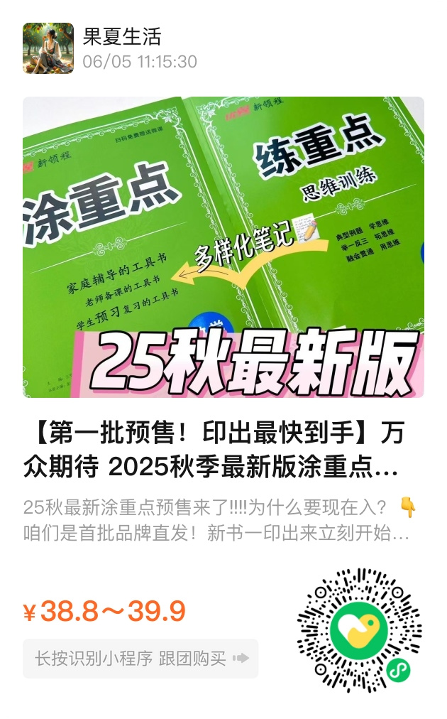 总结:2025秋季新版《涂重点》以古籍批注的匠心设计同步教材,结合现代视听资源,首批预售确保暑假前送达。笔墨与科技交融间,还原了学习最本真的模样——不疾不徐,却步步生花。