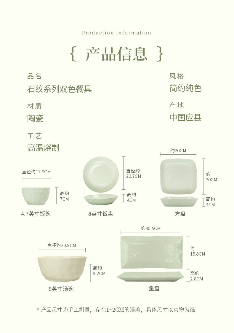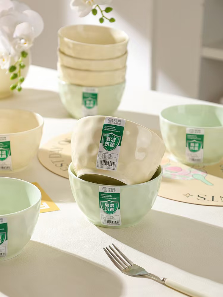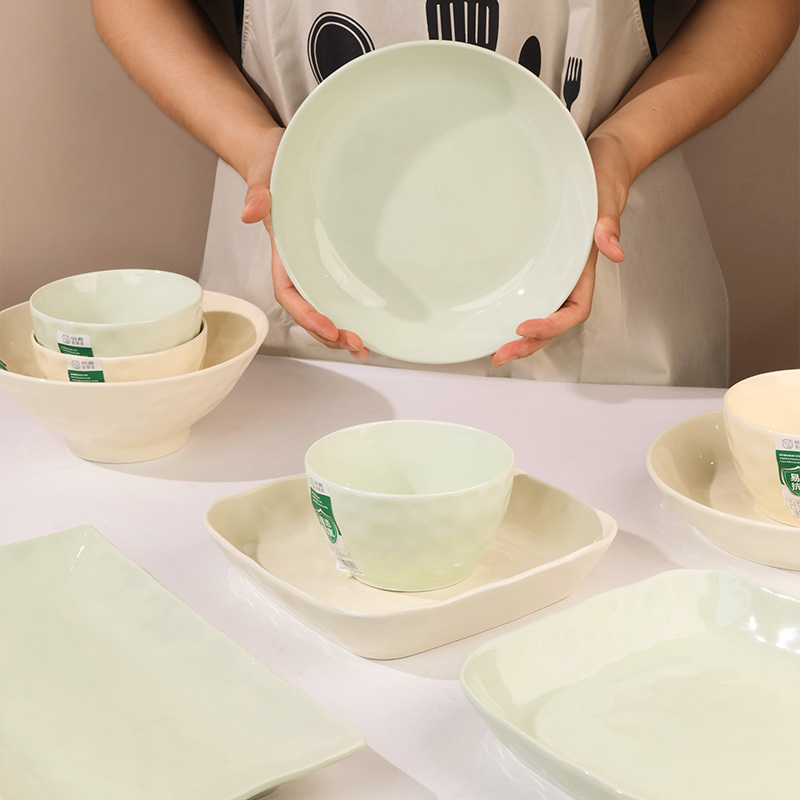 翻开中国瓷器史,从汝窑「雨过天青云破处」到景德镇青花,器物之美总与生活哲学相通。这套孟垣抗菌奶油风石纹餐具,像是穿越千年的宋瓷魂遇见了当代简约审美——1380℃高温淬炼的釉面,透出羊脂玉般的温润光泽。黄绿两色如初春新叶与秋收稻谷,盛一碗热汤时,会想起苏轼「雪沫乳花浮午盏」的诗意。高温烧制的密实瓷胎,连洗碗机的翻滚都成了对它坚贞品质的幽默考验。