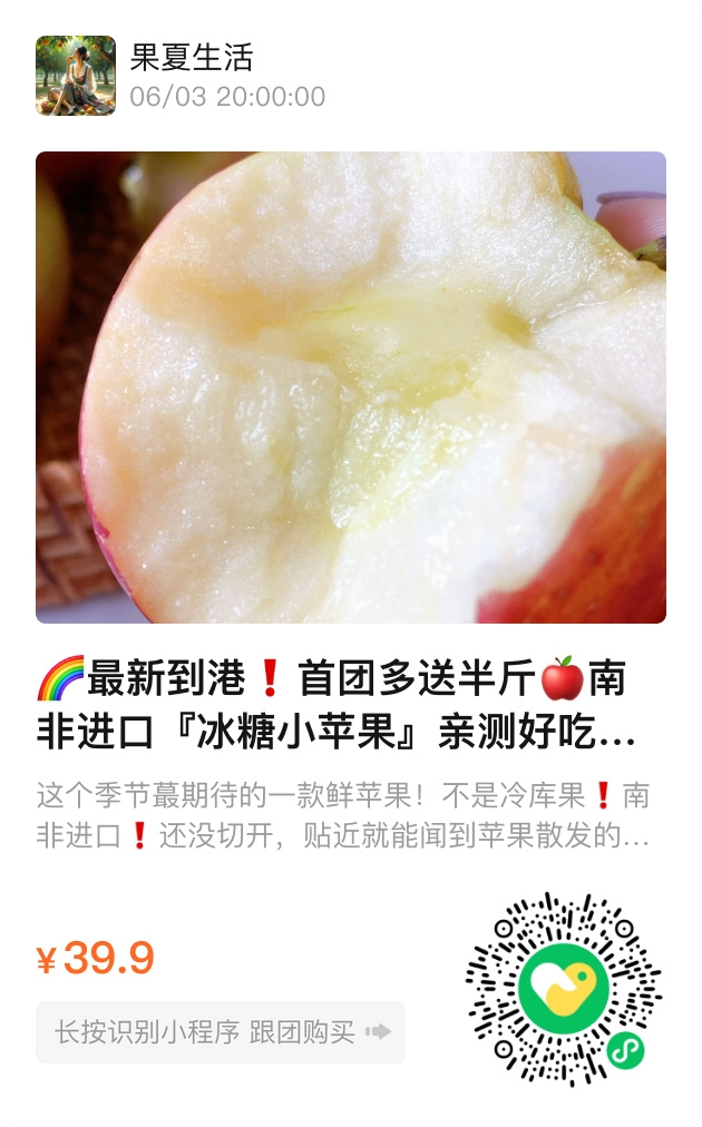 总结:南非冰糖小苹果以阳光滋味的脆甜征服味蕾,首团福利价诚意满满,无论是尝鲜还是囤货,都是这个季节不可错过的自然馈赠。