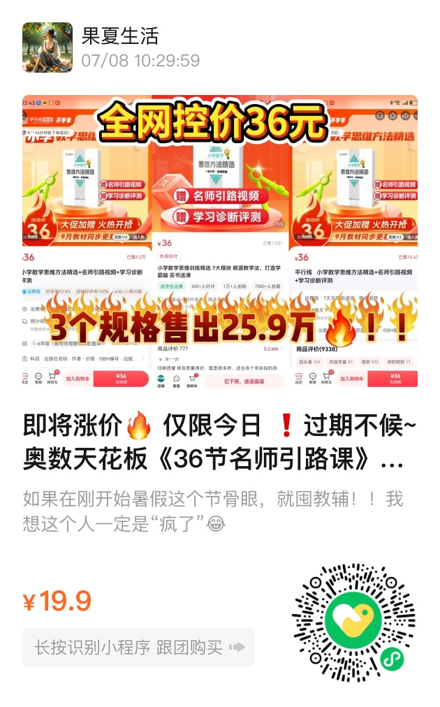 活动最后一天,19.9元解锁244页宝典和194节名师课。种一棵树最好的时间是十年前,其次是现在。数学的种子埋下了,静待思维开花。