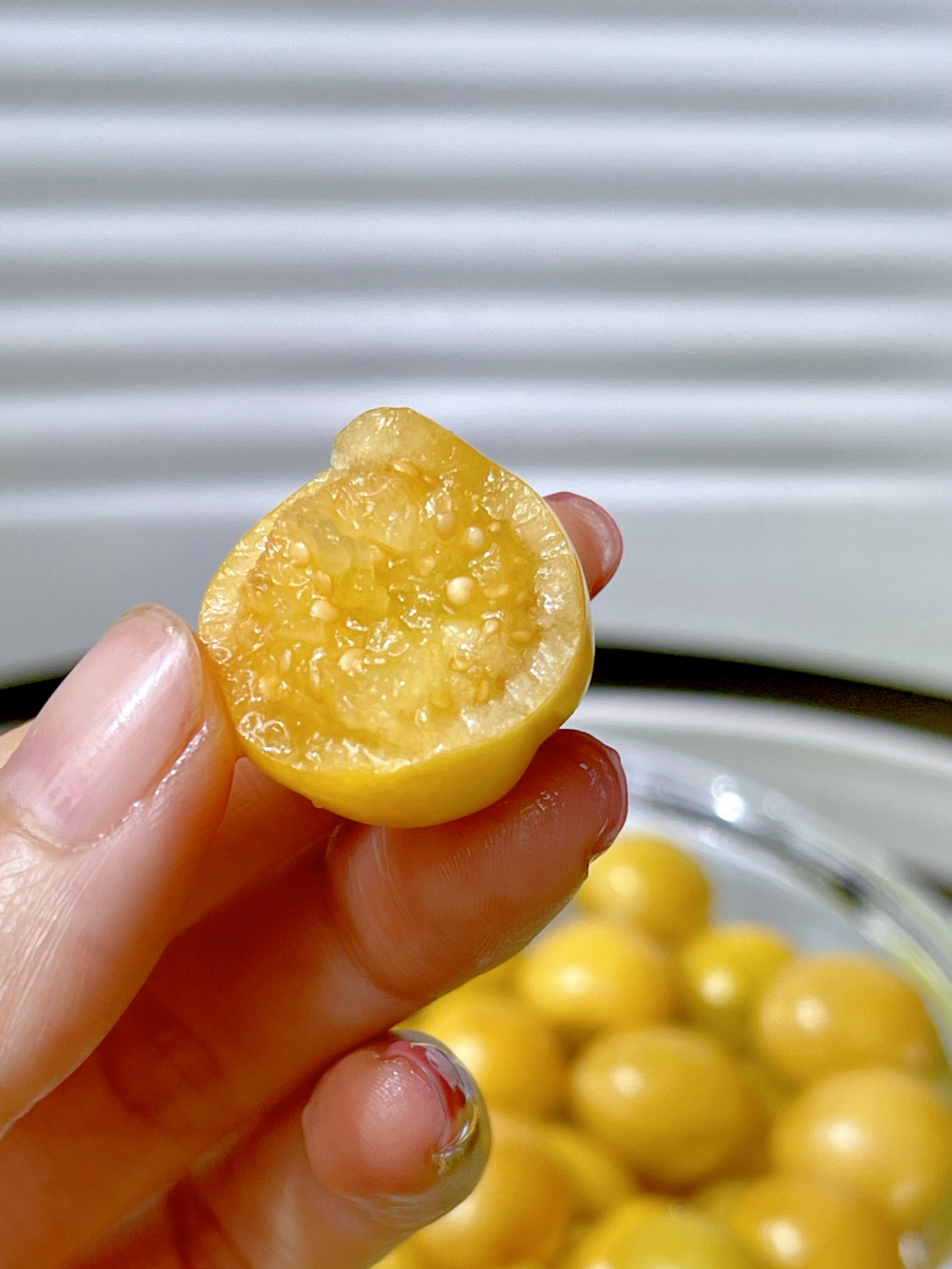 北纬40度的阳光在丹东黑土地上酝酿了整整一个夏天,终于凝结成这些小灯笼般的金黄果实。掀开那层薄如蝉翼的外衣,珍珠奶油果像褪去面纱的姑娘,露出浑圆饱满的身姿。东北孩子都记得,儿时在田间随手摘下一颗,齿尖轻叩的瞬间,奶香混着蜜汁在唇齿间炸开,那抹甜能顺着记忆蜿蜒生长二十年。而今南方的味蕾或许还未识得这枚”金疙瘩”,但它的清甜从不挑人——像小时候外婆藏在兜里的水果糖,朴素却足够治愈整个下午的馋。