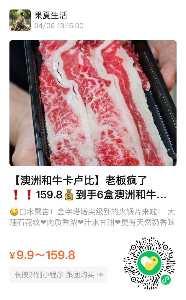 尝鲜活动: 159.8元得6盒澳洲和牛卡努比(120g/盒),赠100g牛丼汁,顺丰包邮。