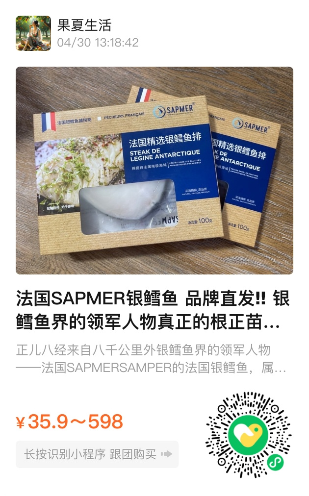 总结:法国SAPMER银鳕鱼以南极野生、船上速冻的品质立于行业之巅,此次团购以亲民价格呈现深海本味,从宝宝辅食到宴席主菜皆宜。认准品牌授权,让真正的海洋馈赠走上餐桌。