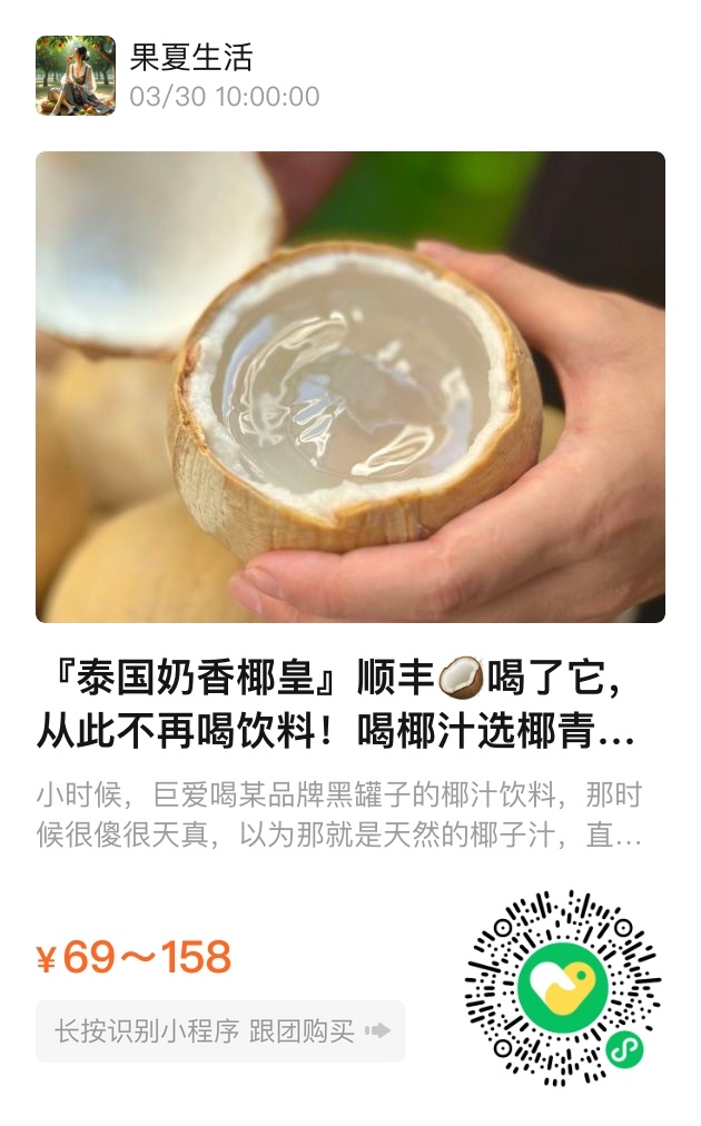 目前椰皇正值糖分沉淀的黄金期,我们精选350g以上大果冷链直达。顺丰包裹里会附赠开椰器和饮用指南,记得冰镇后再享用它最迷人的奶香。有些滋味像候鸟迁徙般讲究时节,这颗跨越三千公里而来的奶香椰皇,正是大地写给味蕾的夏日情书。