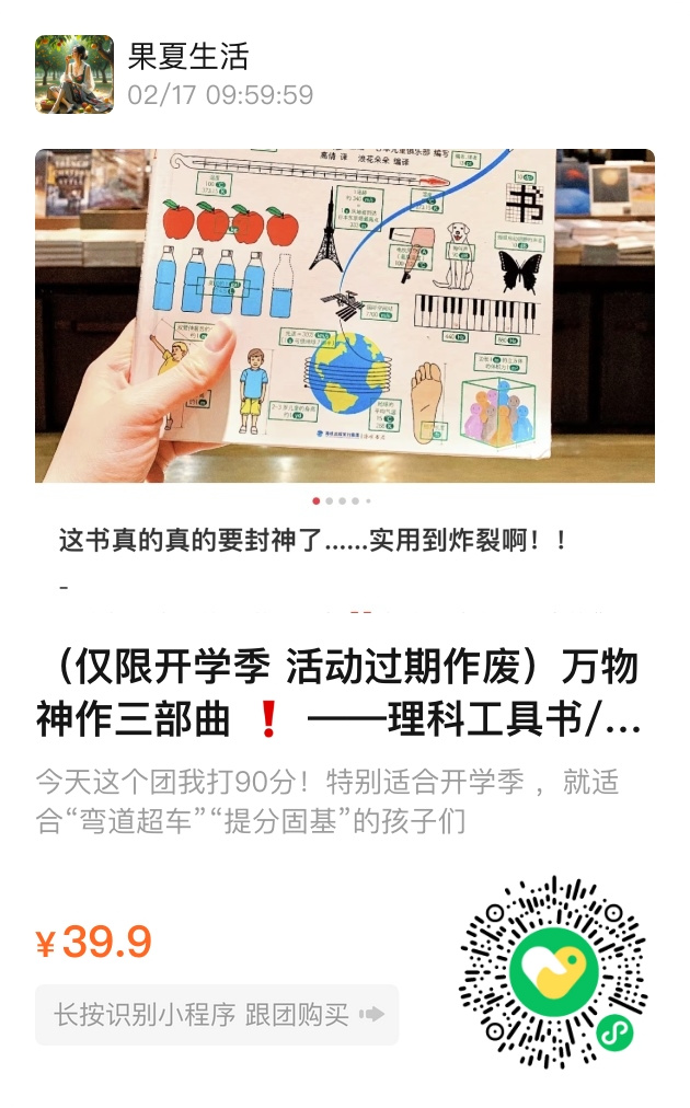 许多家庭已经通过《万物的尺度》见证了这本书的魔力——它让晦涩的概念变得触手可及。而这次,我们想给您更完整的支持:三本书共同覆盖理科核心领域,形成知识闭环。平装版与精装内容完全一致,价格却大幅降低,只为让更多孩子能轻松拥有这套”提分固基”的实用工具。39.9元的开学特价,是真心实意的让利,也是对每一位信任者的回馈。
