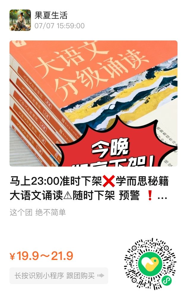 价格跌到21.9元时,后台同事哀嚎”这比白菜还便宜”,要知道去年有位读者花43元买完才发现赠品是王崧舟老师的朗诵课。此刻书架上第七级正摊开在《少年中国说》,油墨印着”前途似海,来日方长”,而系统倒计时提醒着23:00的截团时刻。突然明白古人为何总在典籍扉页题”藏之名山”——真正的好书,从来都是和时间赛跑的信使。