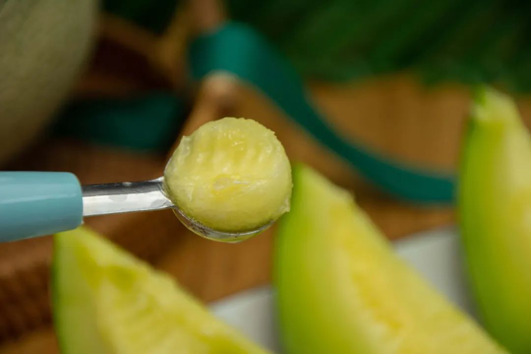 这款蜜瓜产自山东海阳,得天独厚的自然条件让它比普通甜瓜更加香甜多汁。果农们用恒温大棚精心栽培,不催熟、无农残,每个瓜都圆润饱满,皮薄肉厚。刚摘下的瓜脆爽可口,放两天又会变得绵密软糯,用勺子挖着吃,像在品尝一颗会流淌蜜汁的“冰淇淋球”。无论是小朋友还是长辈,都能轻松享受这份清凉。